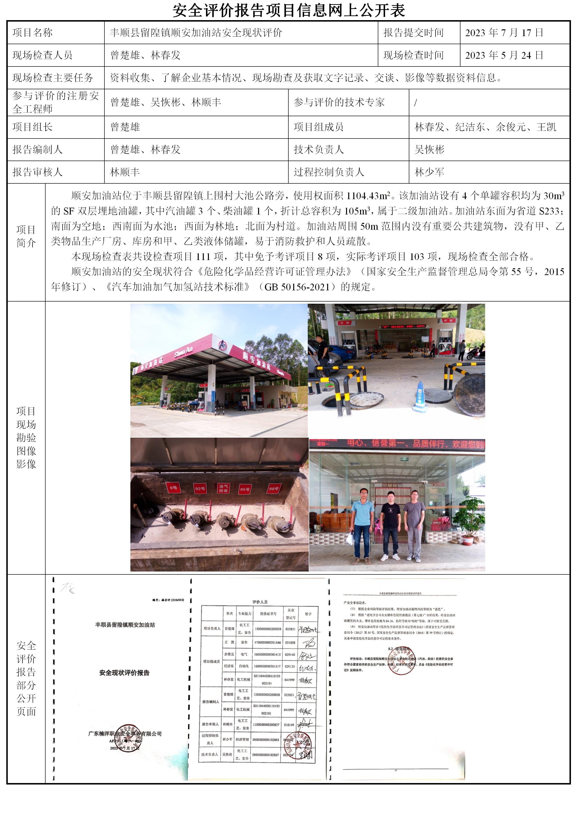 丰顺县留隍镇顺安加油站安全现状评价