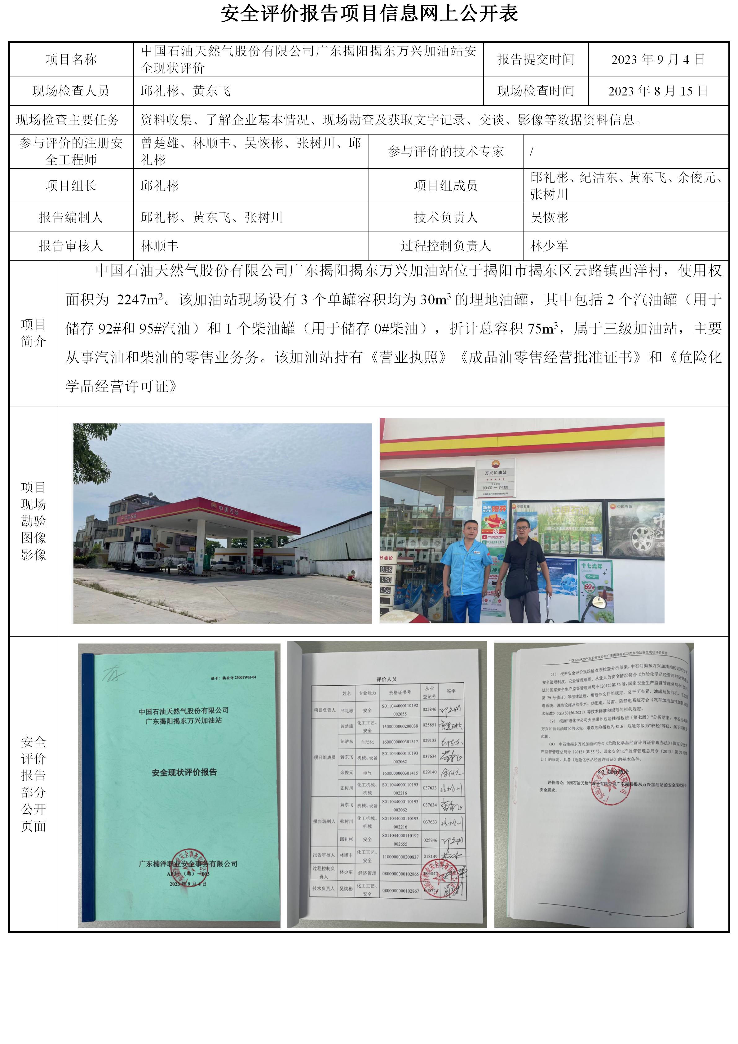 中国石油天然气股份有限公司广东揭阳揭东万兴加油站安全现状评价