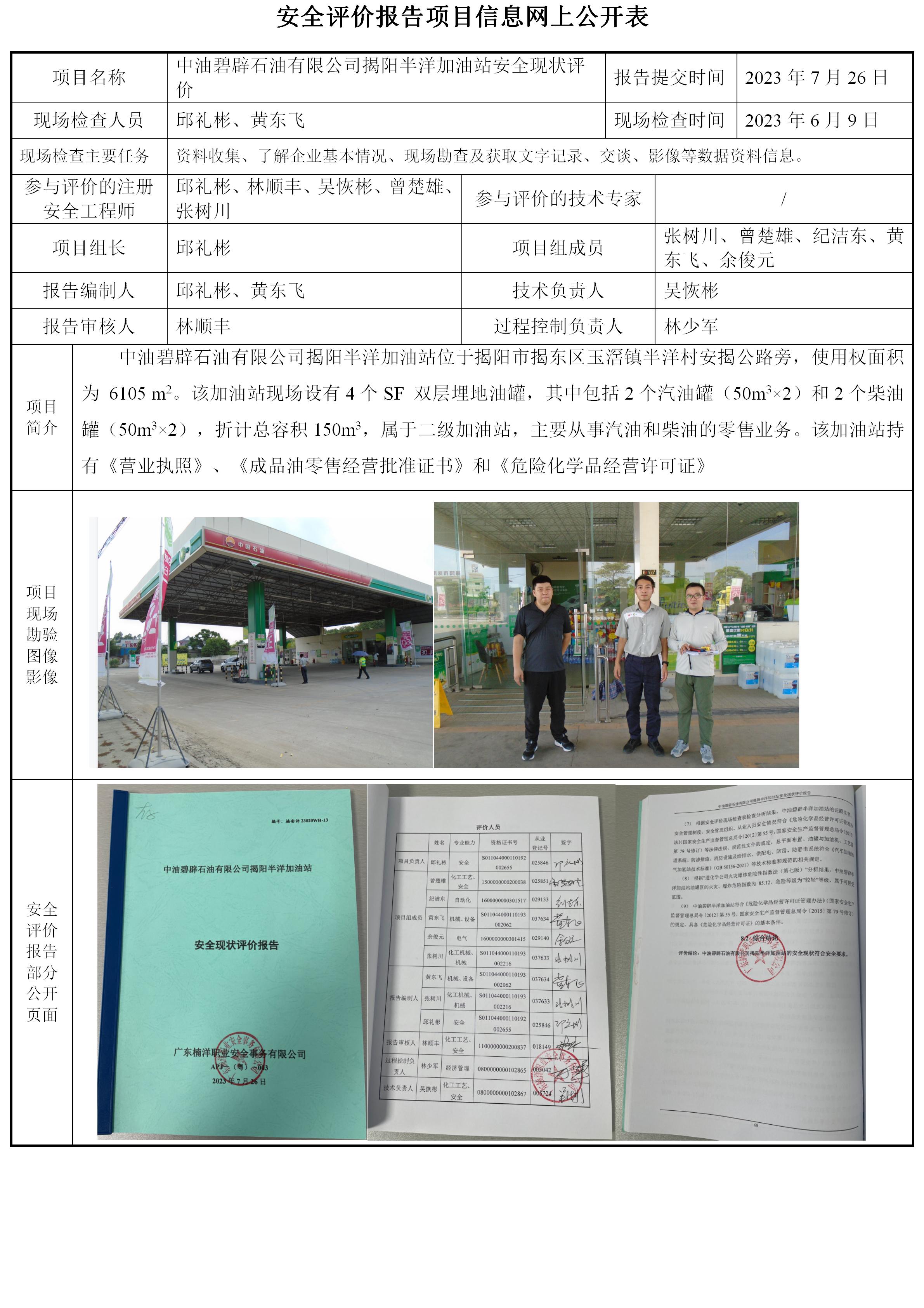 中油碧辟石油有限公司揭阳半洋加油站安全现状评价