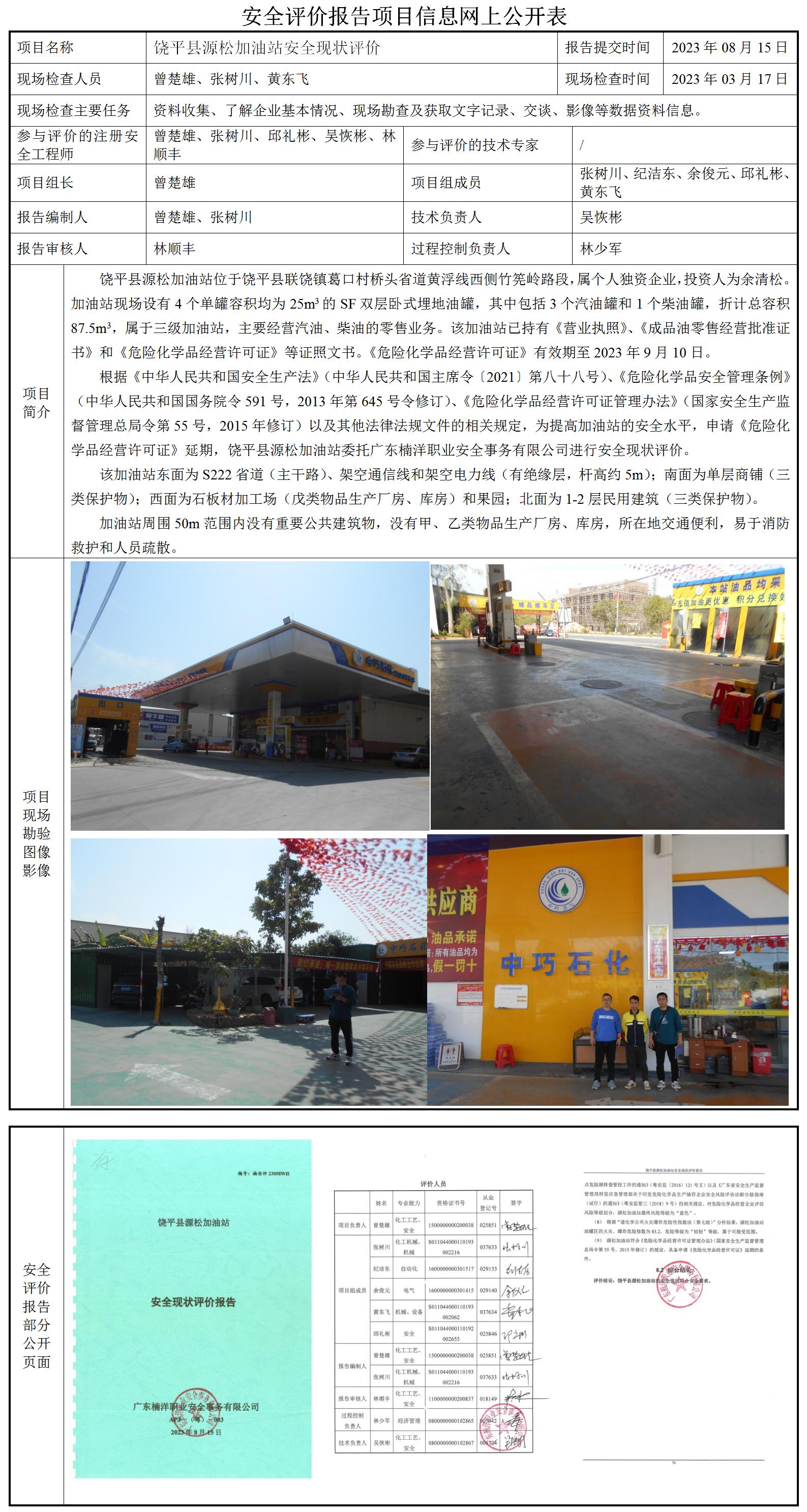 饶平县源松加油站安全现状评价