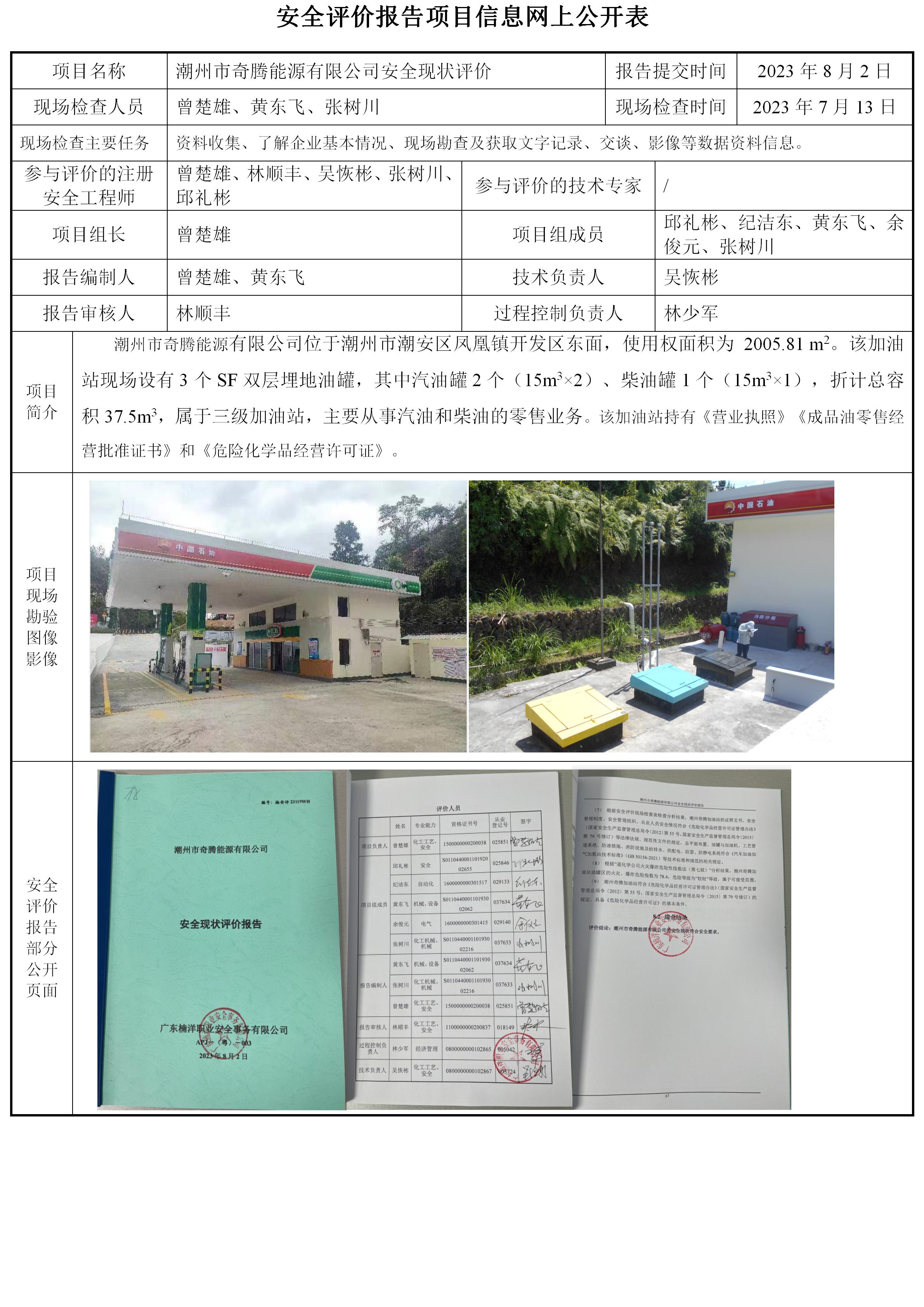 潮州市奇腾能源有限公司安全现状评价