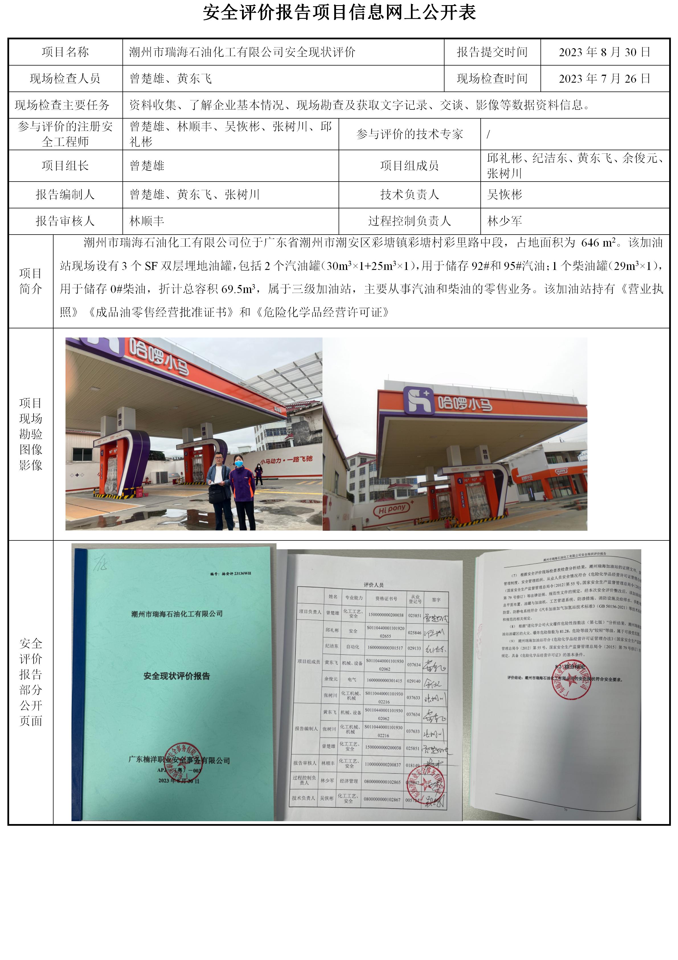 潮州市瑞海石油化工有限公司安全现状评价