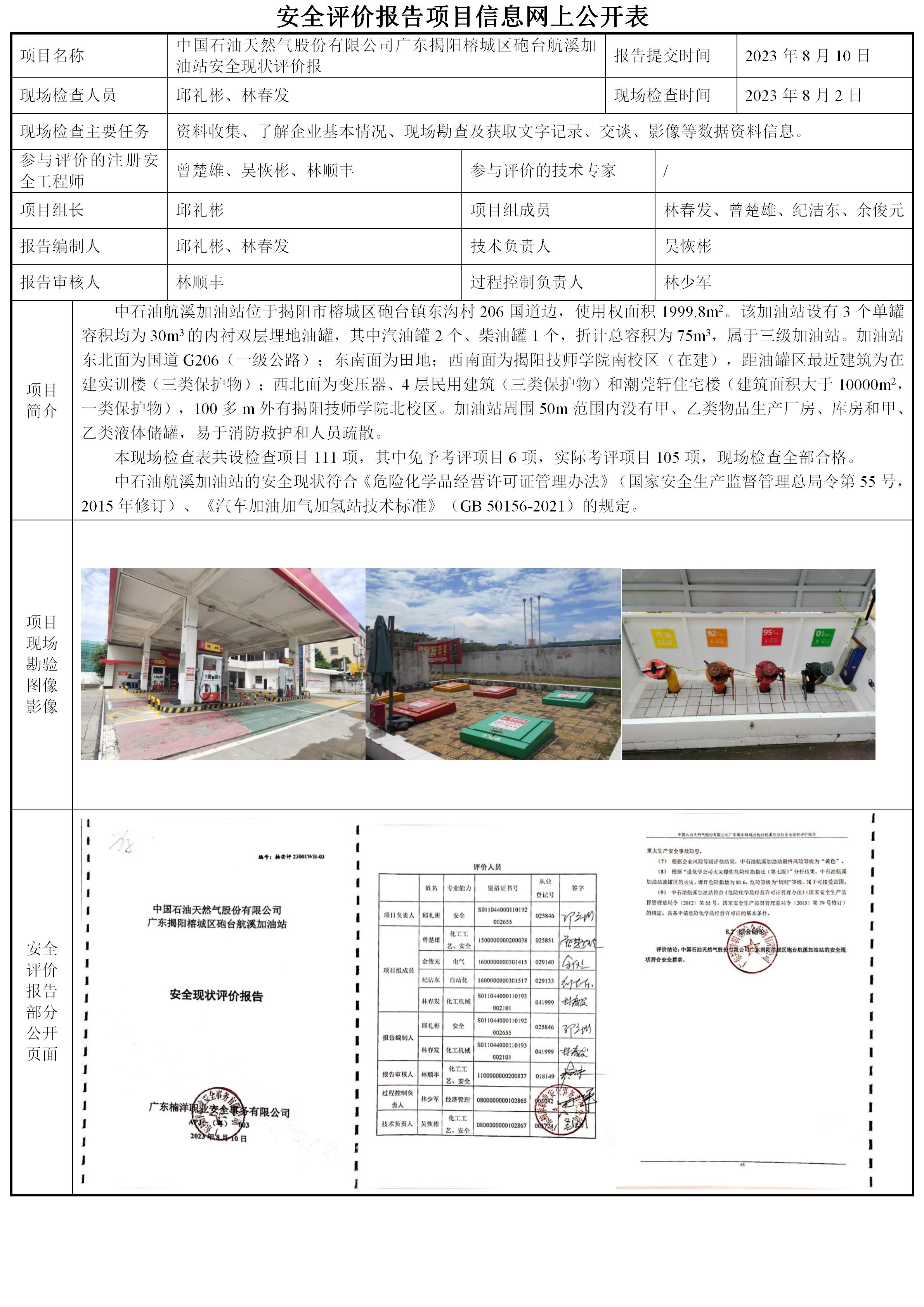中国石油天然气股份有限公司广东揭阳榕城区砲台航溪加油站安全现状评价