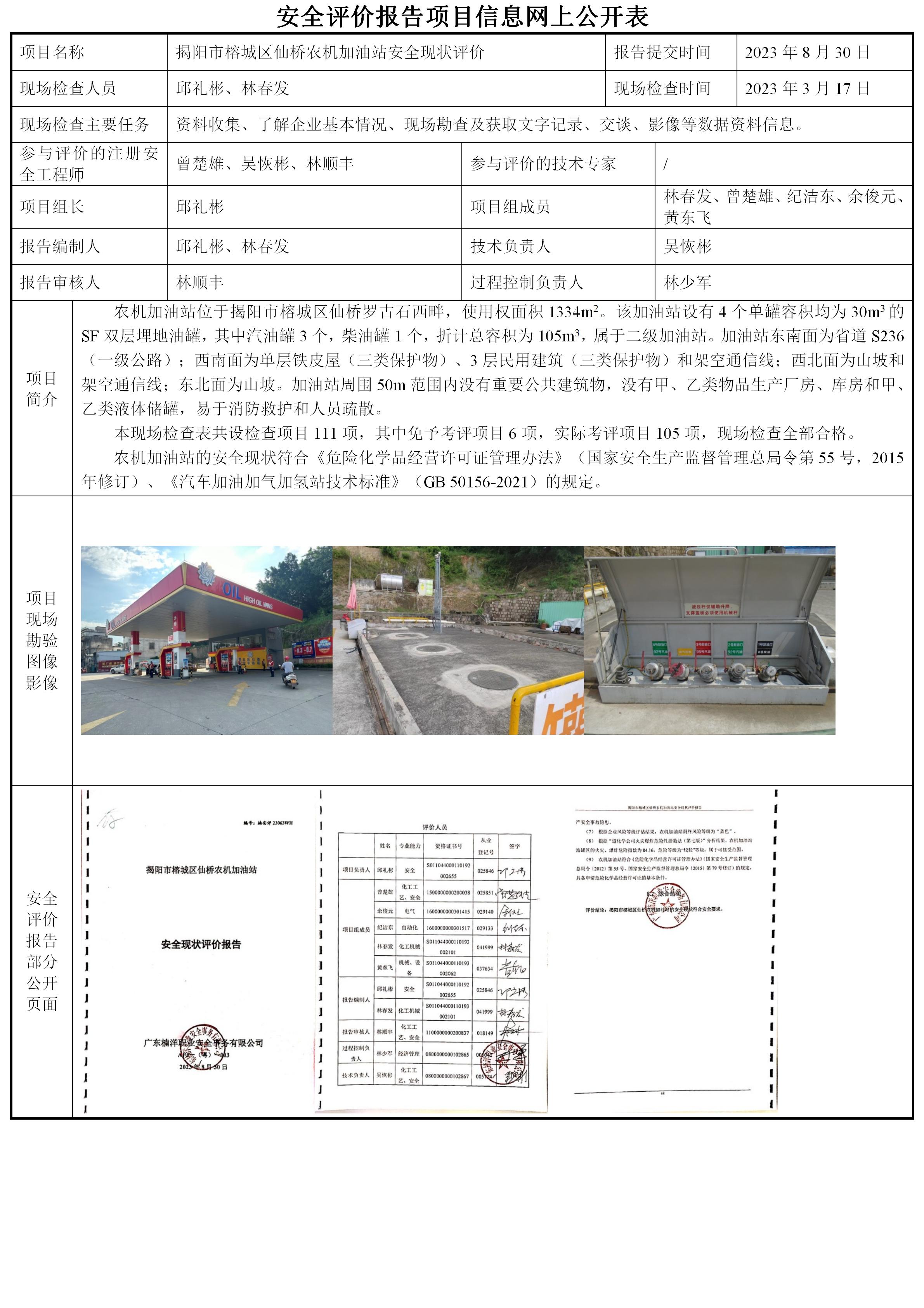 揭阳市榕城区仙桥农机加油站安全现状评价