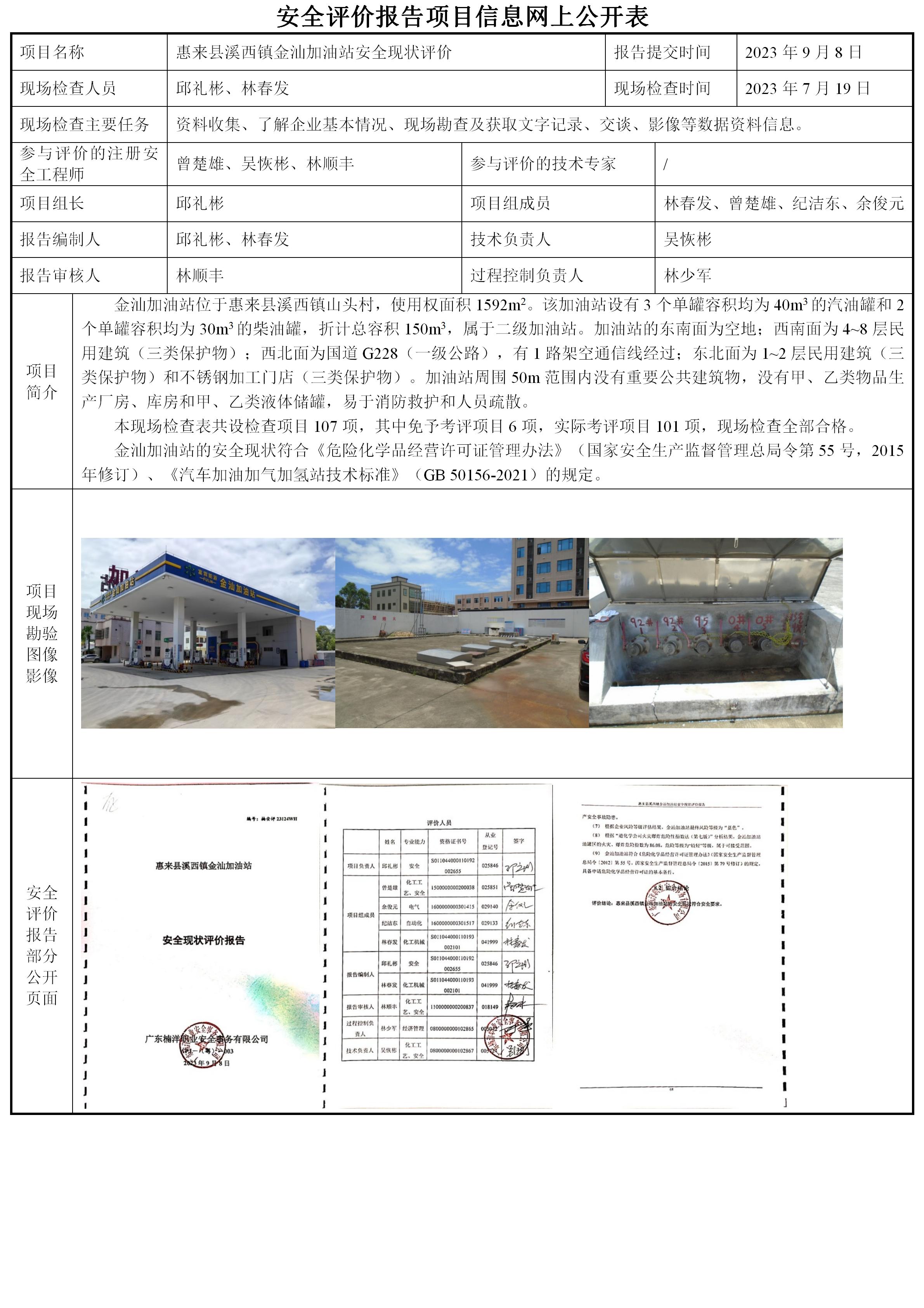惠来县溪西镇金汕加油站安全现状评价
