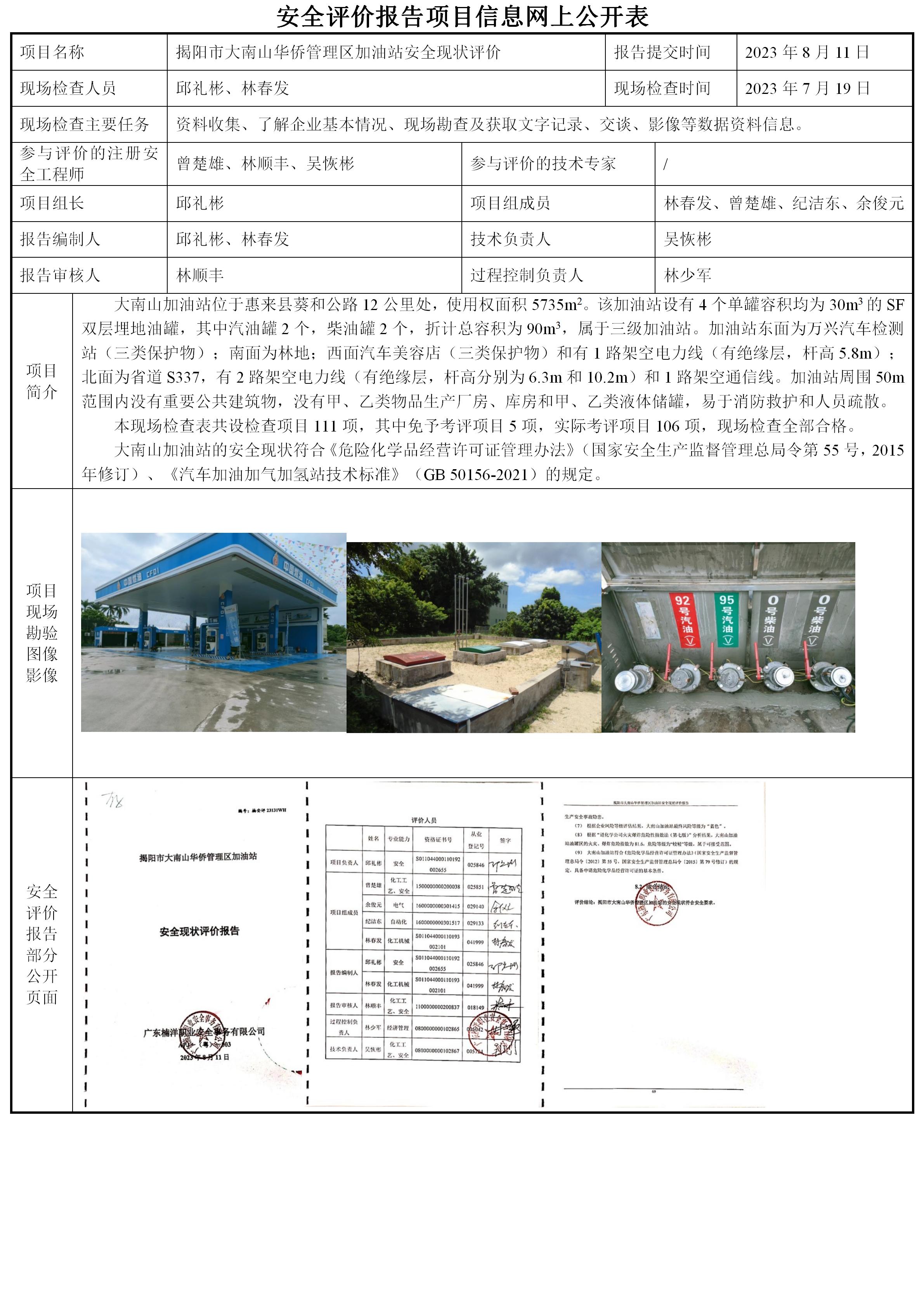 揭阳市大南山华侨管理区加油站安全现状评价