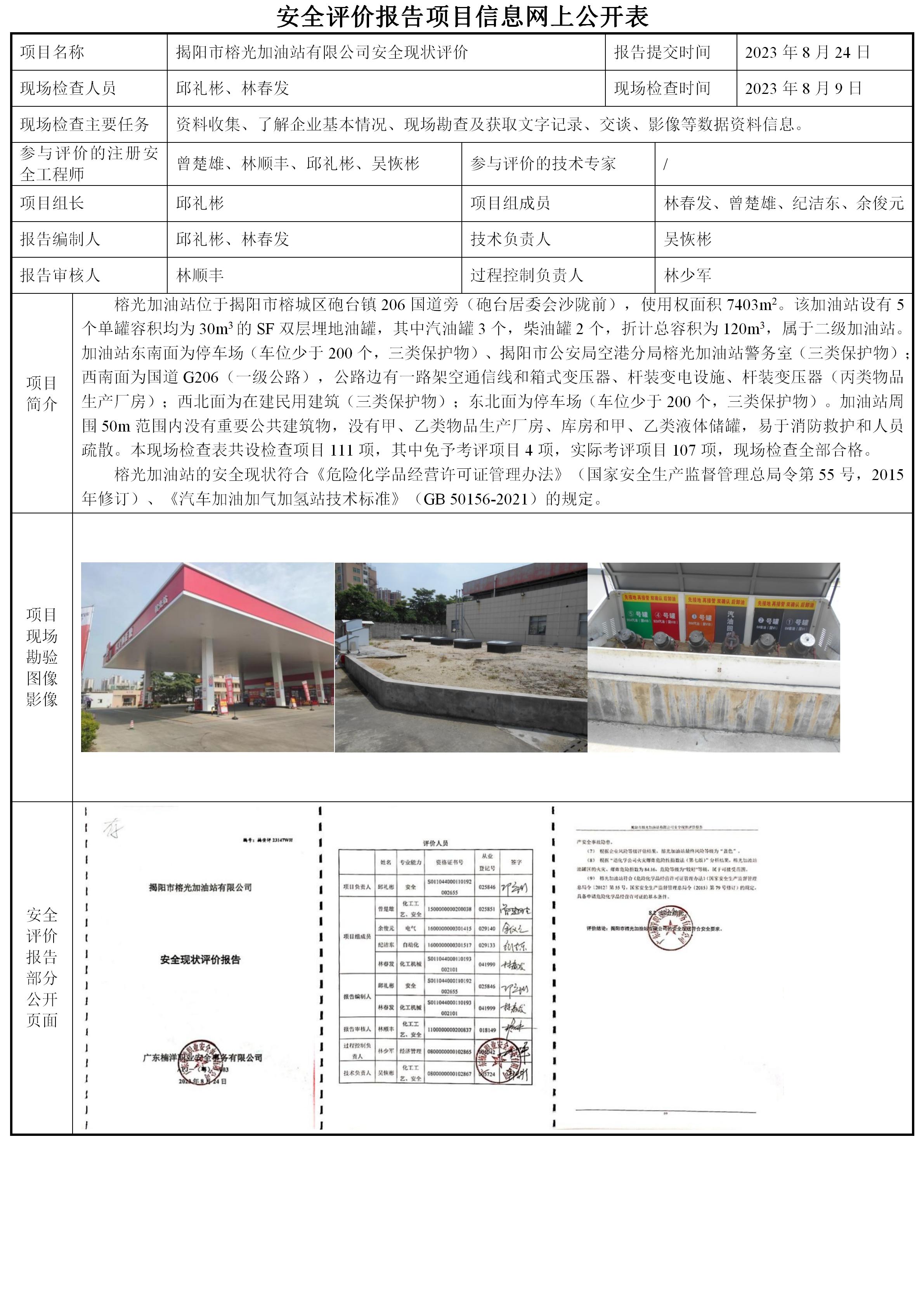 揭阳市榕光加油站有限公司安全现状评价
