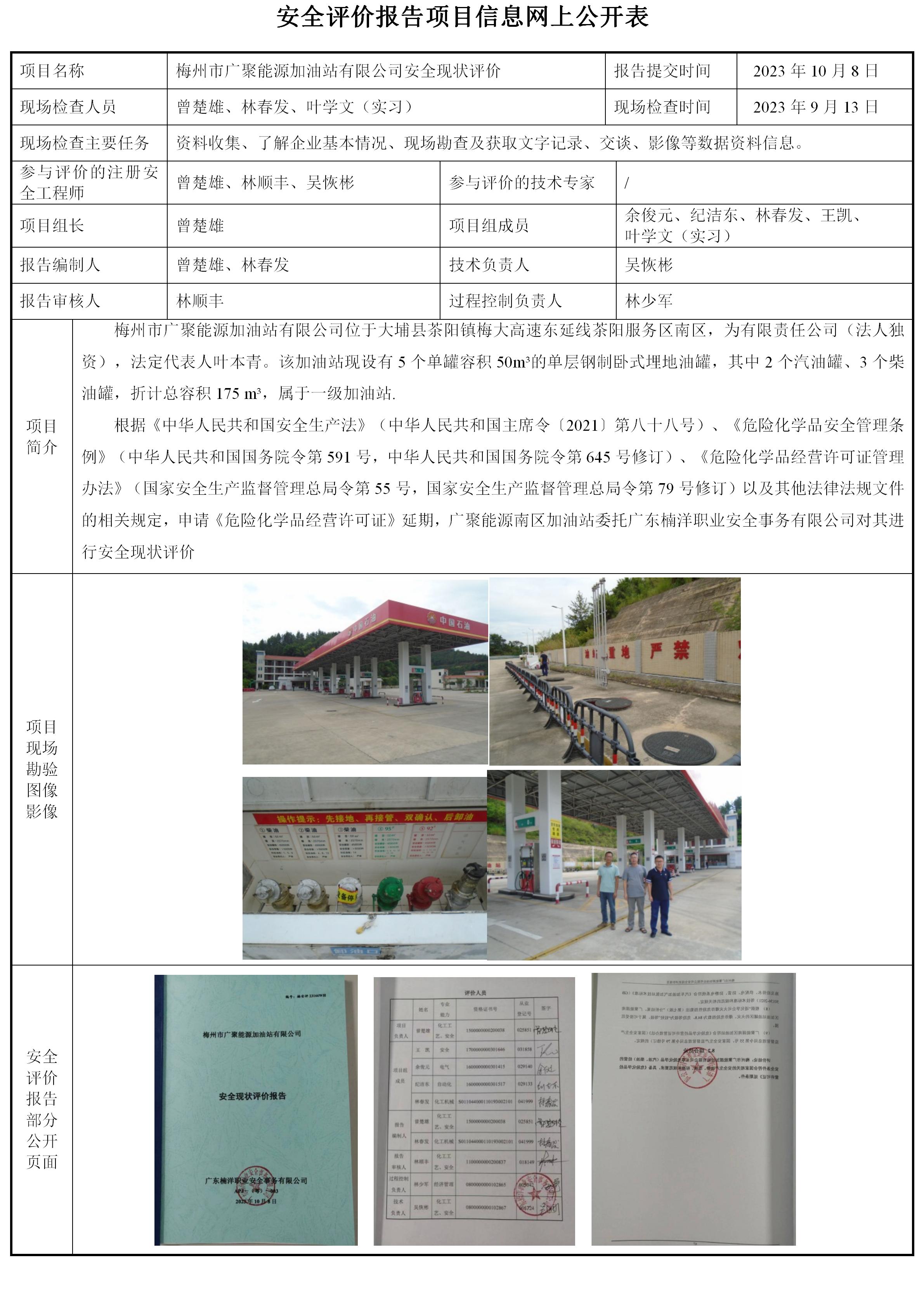 梅州市广聚能源加油站有限公司北站安全现状评价
