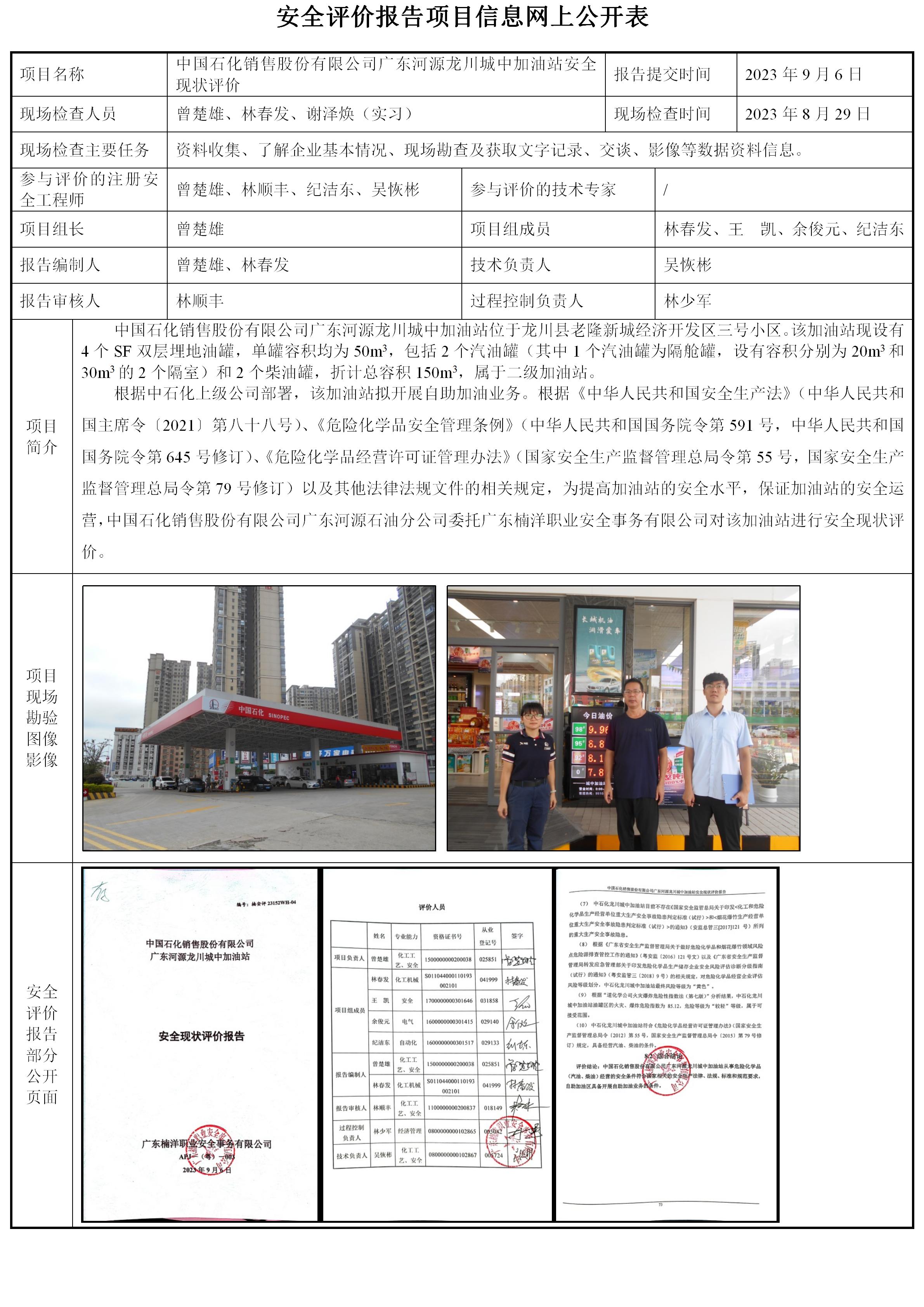 中国石化销售股份有限公司广东河源龙川城中加油站安全现状评价
