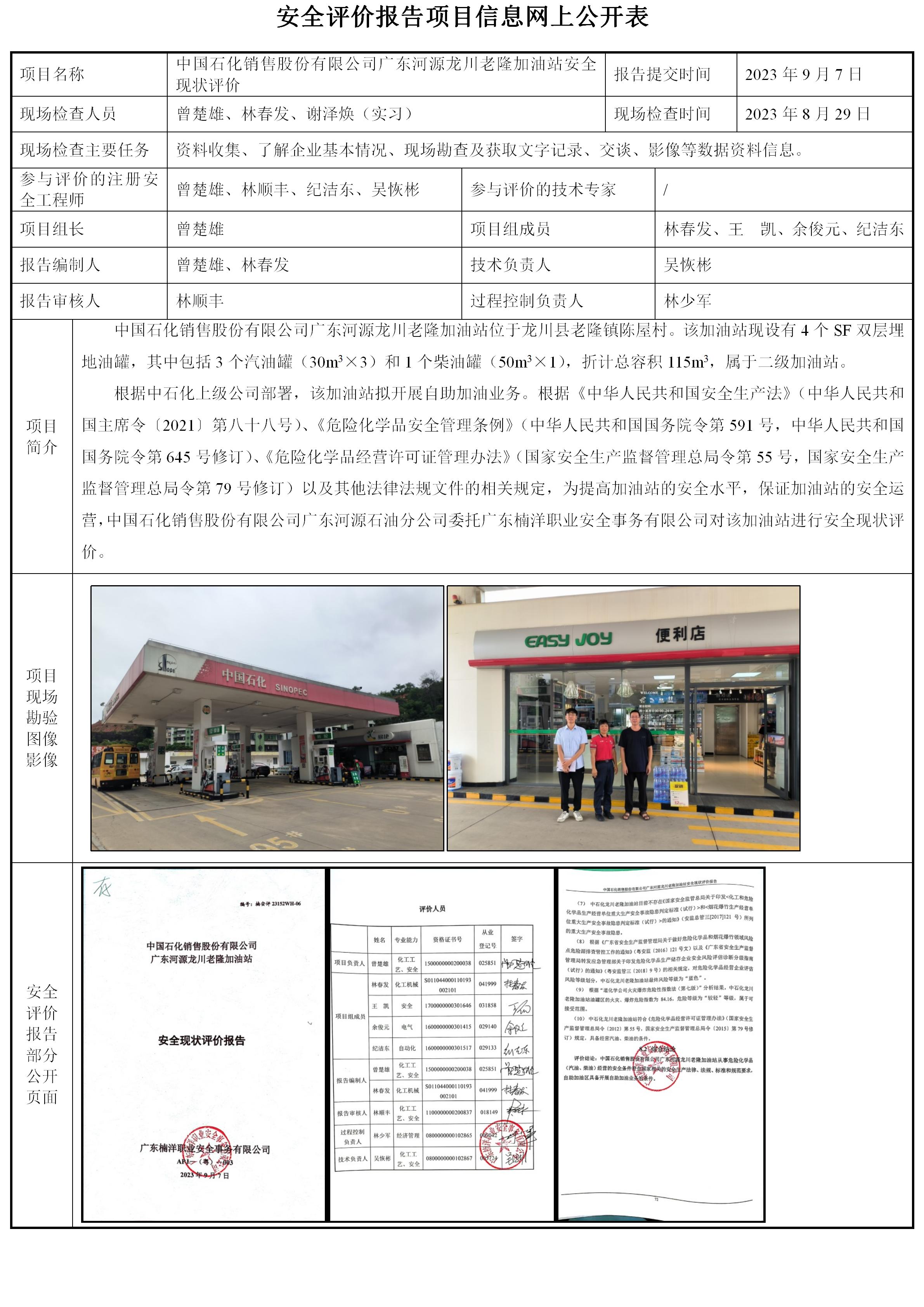 中国石化销售股份有限公司广东河源龙川老隆加油站安全现状评价