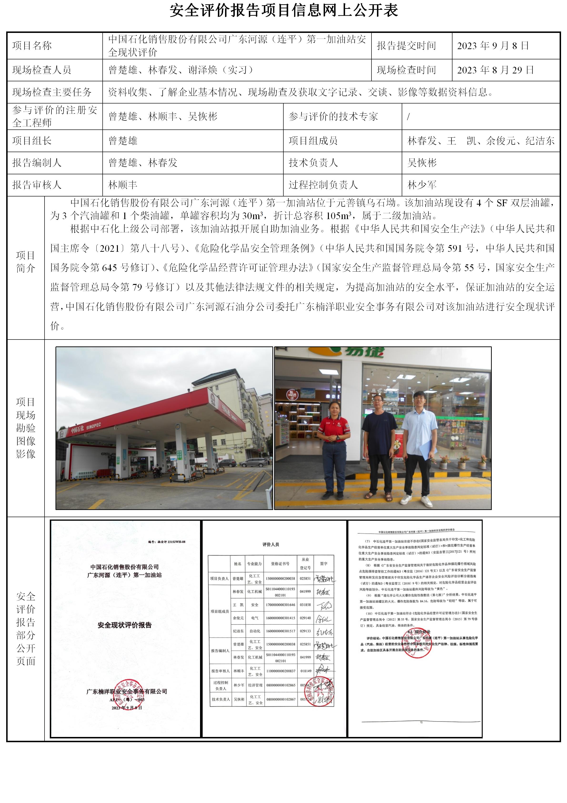 中国石化销售股份有限公司广东河源(连平)第一加油站安全现状评价