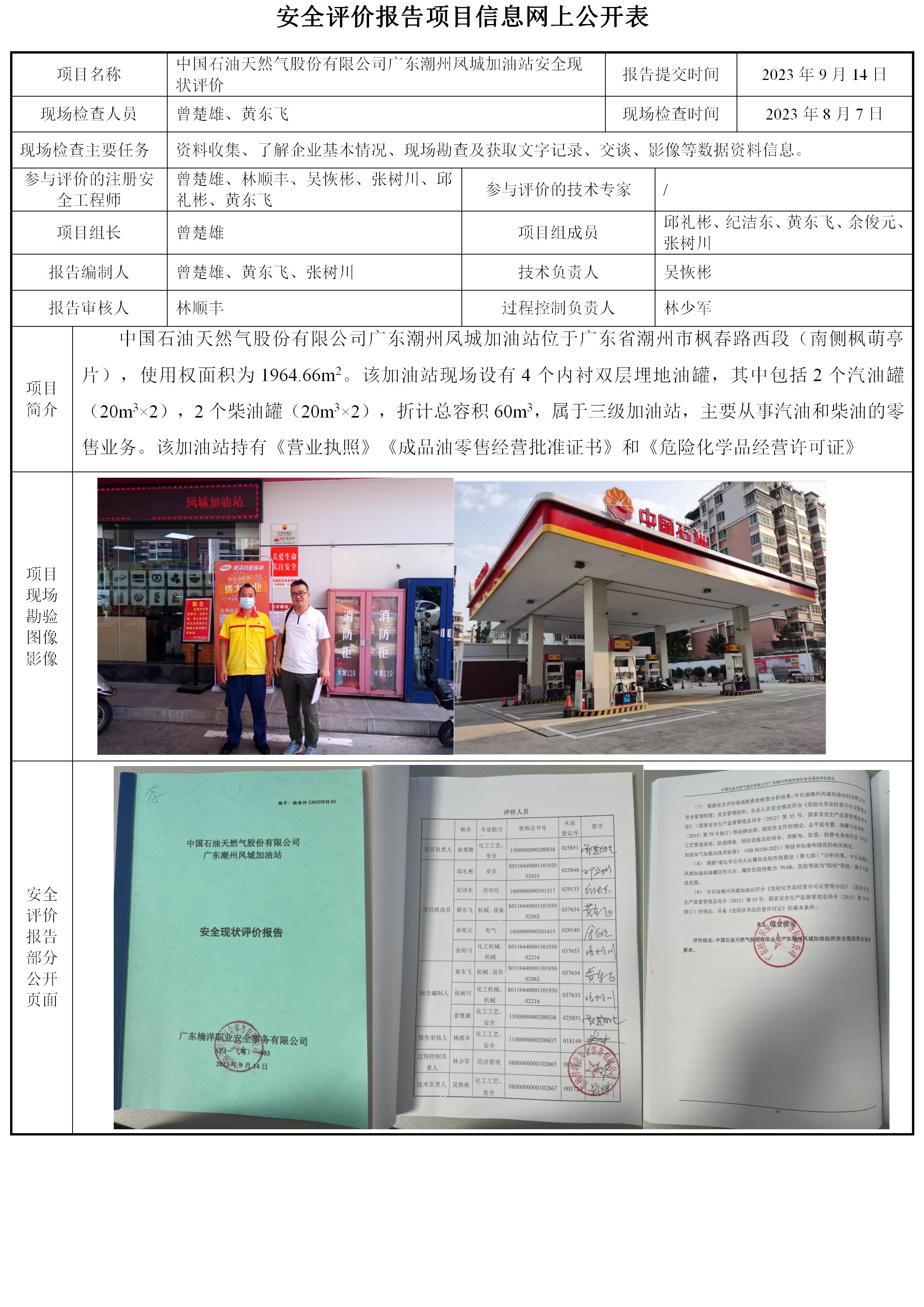 中国石油天然气股份有限公司广东潮州凤城加油站安全现状评价