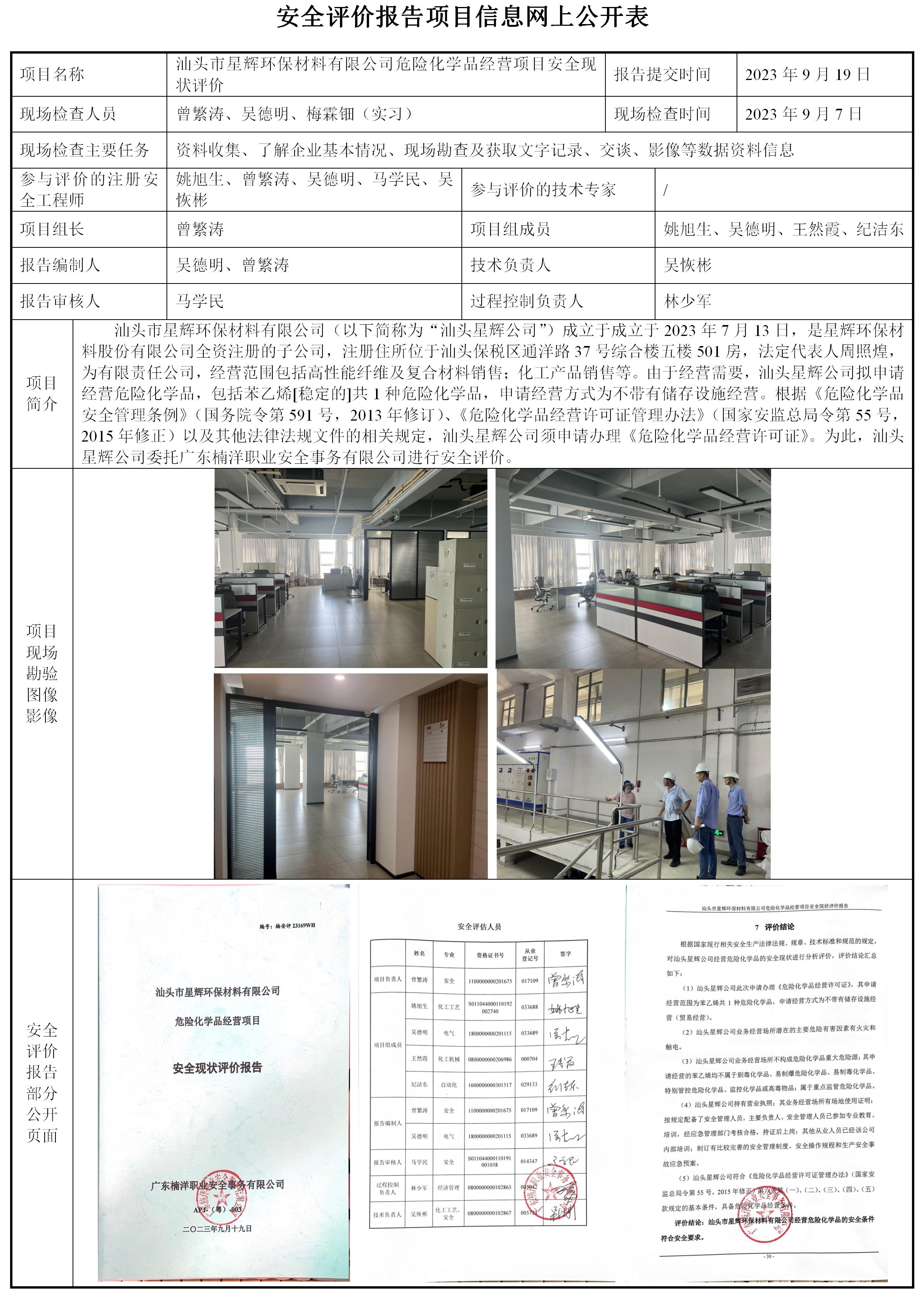 汕头市星辉环保材料有限公司危险化学品经营项目安全现状评价