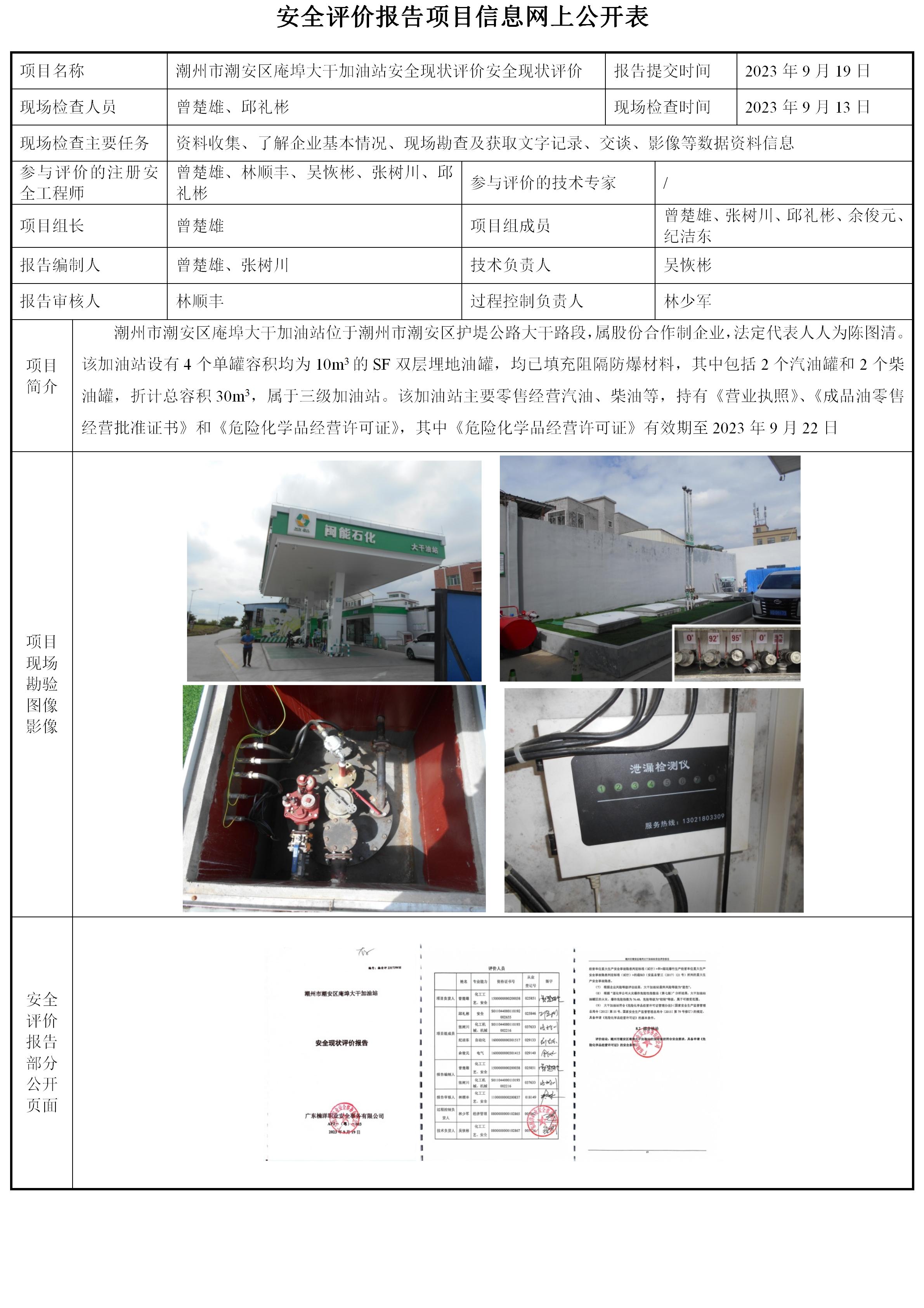 潮州市潮安区沙溪顺周加油站安全现状评价