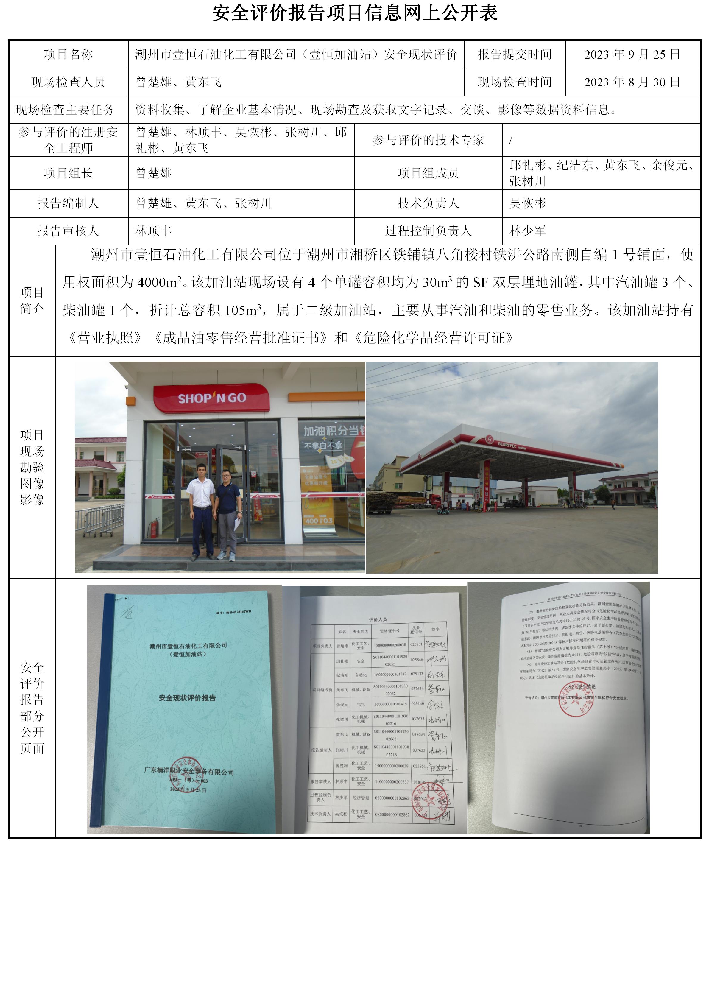 潮州市壹恒石油化工有限公司(壹恒加油站)安全现状评价