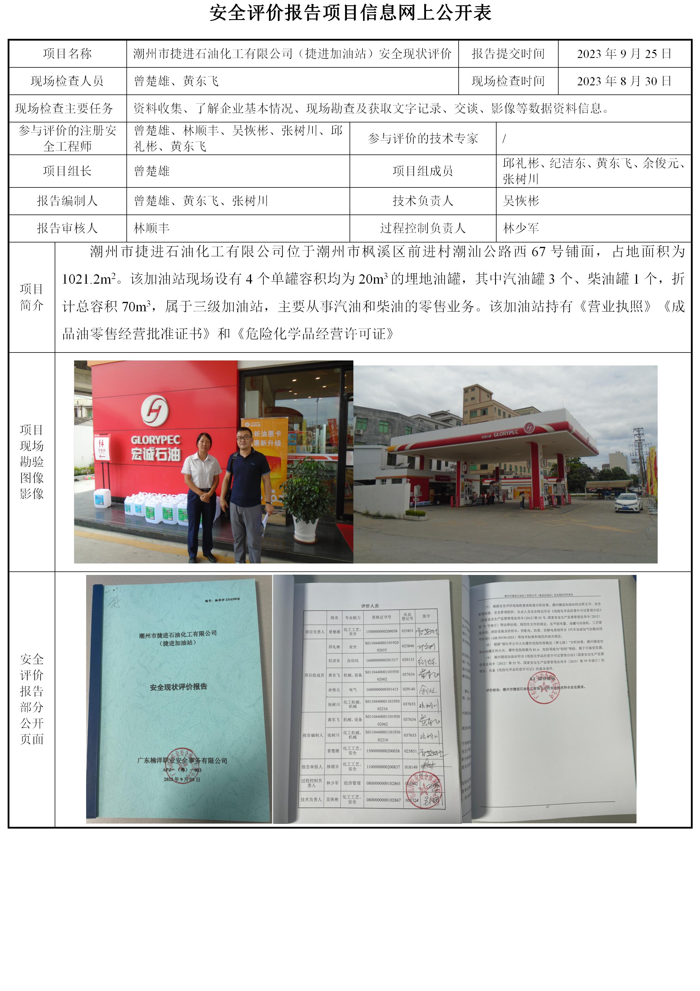 潮州市捷进石油化工有限公司(捷进加油站)安全现状评价