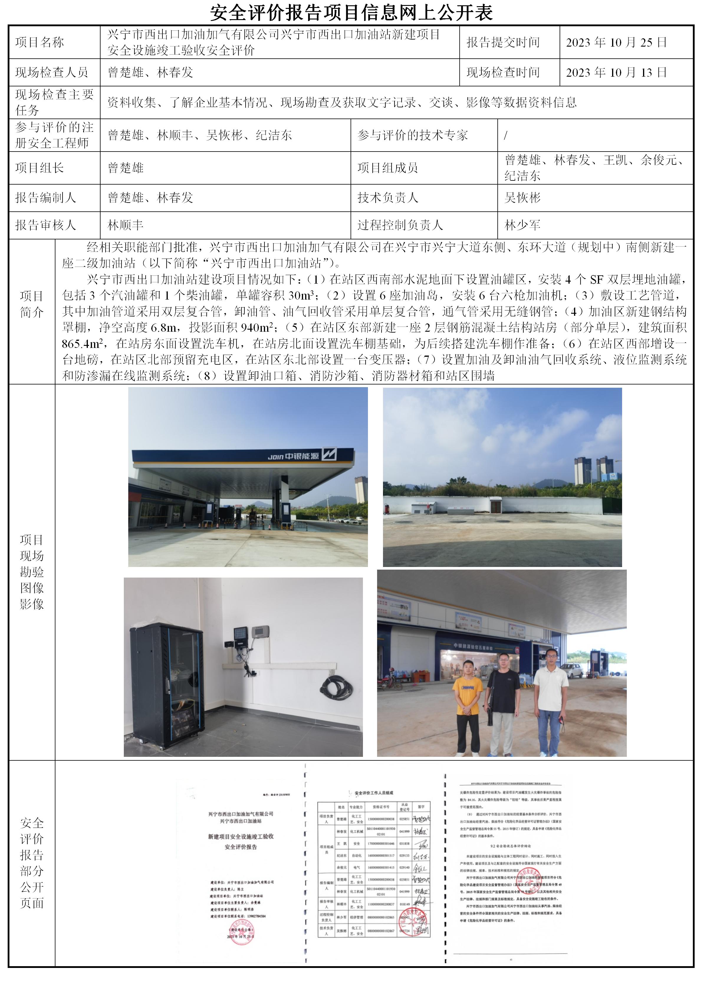 兴宁市西出口加油加气有限公司兴宁市西出口加油站新建项目安全设施竣工验收安全评价