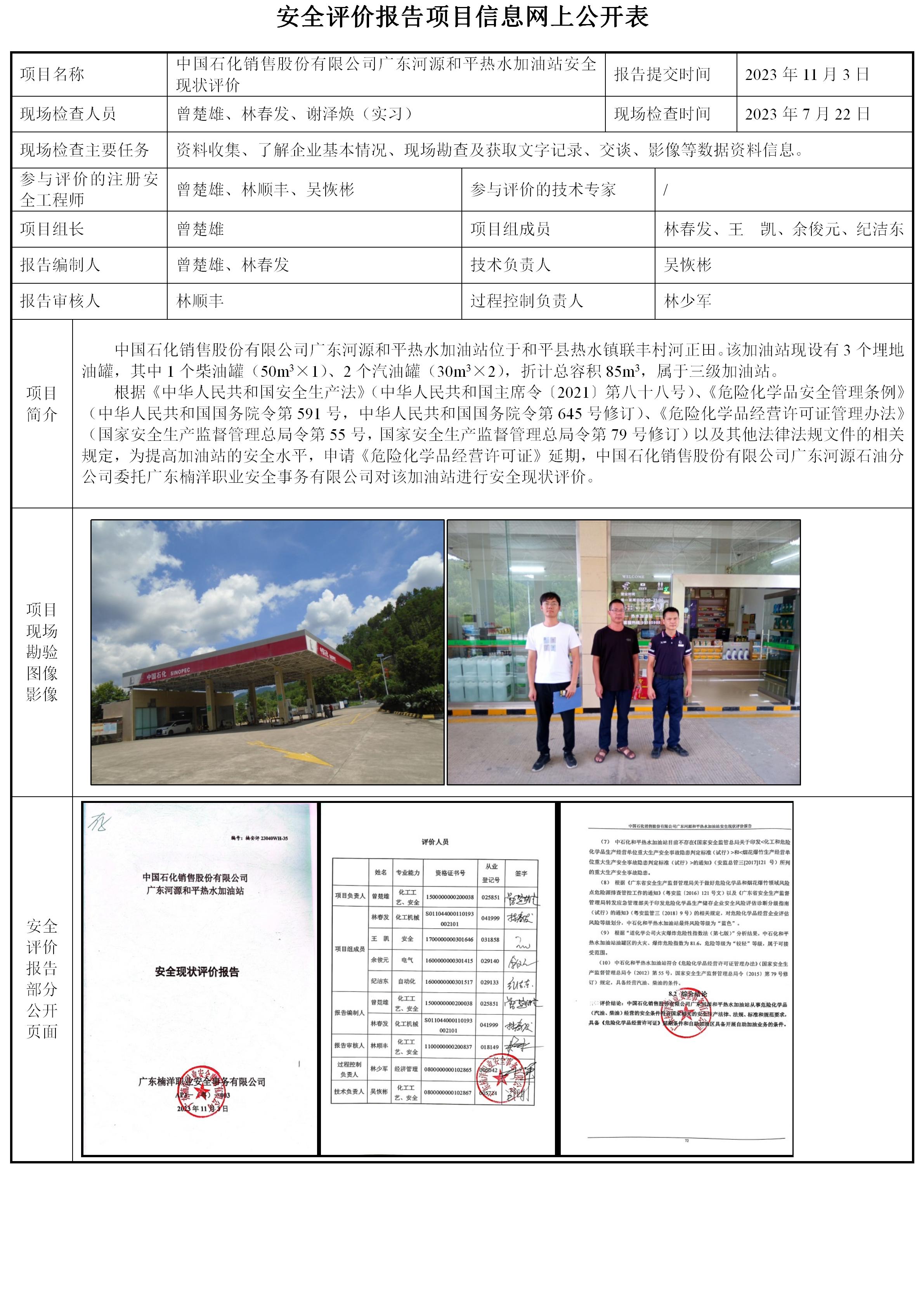 中国石化销售股份有限公司广东河源和平热水加油站安全现状评价