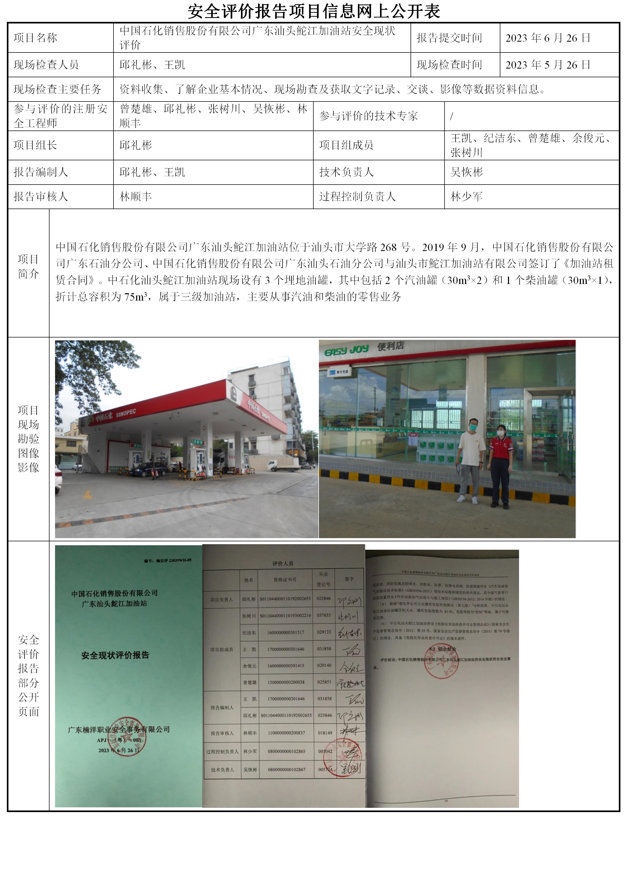 中国石化销售股份有限公司广东汕头鮀江加油站安全现状评价