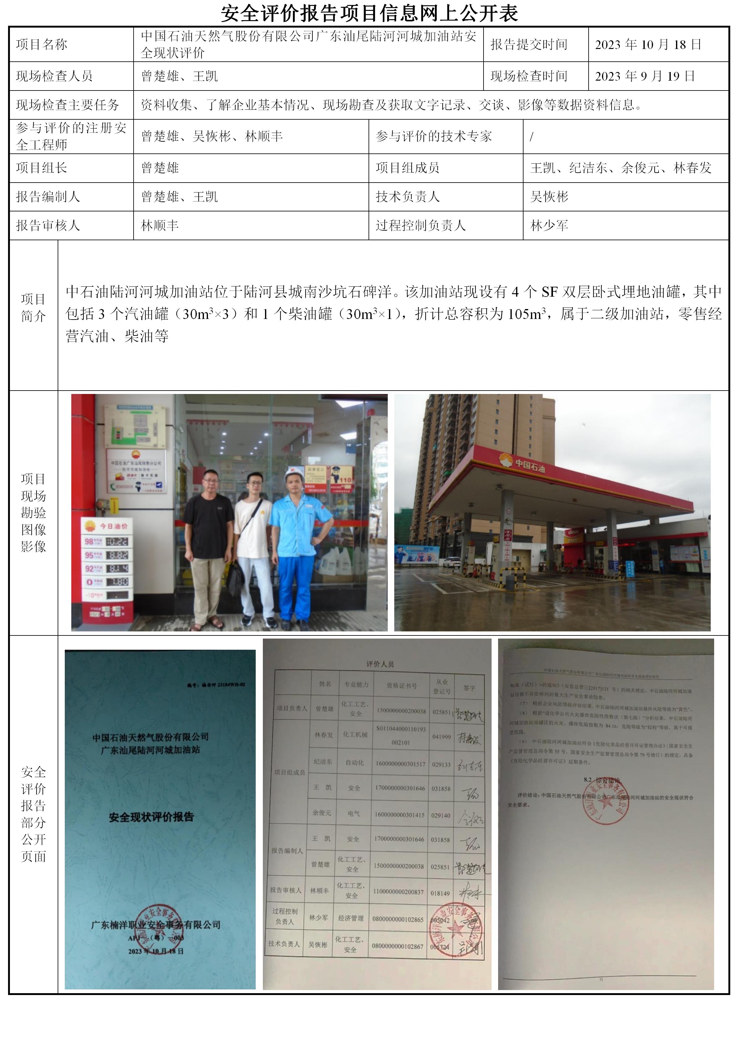 中国石油天然气股份有限公司广东汕尾陆河河城加油站安全现状评价