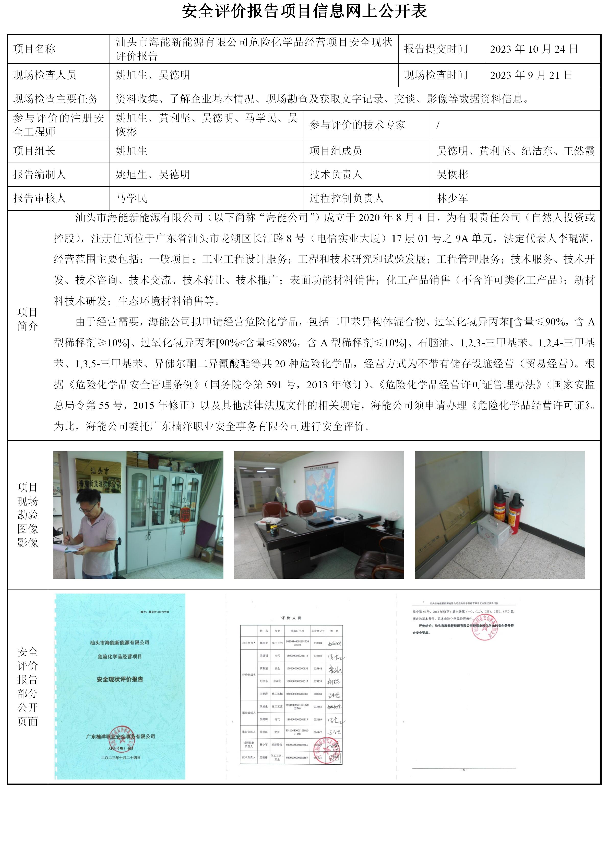 汕头市海能新能源有限公司危险化学品经营项目安全现状评价