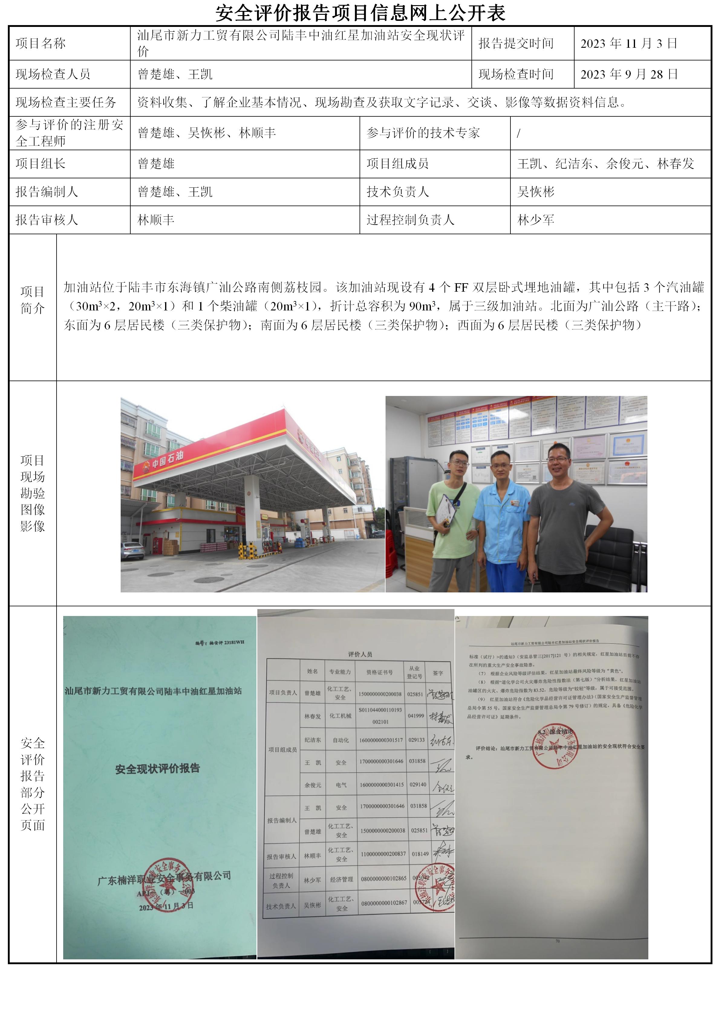 汕尾市新力工贸有限公司陆丰中油红星加油站安全现状评价