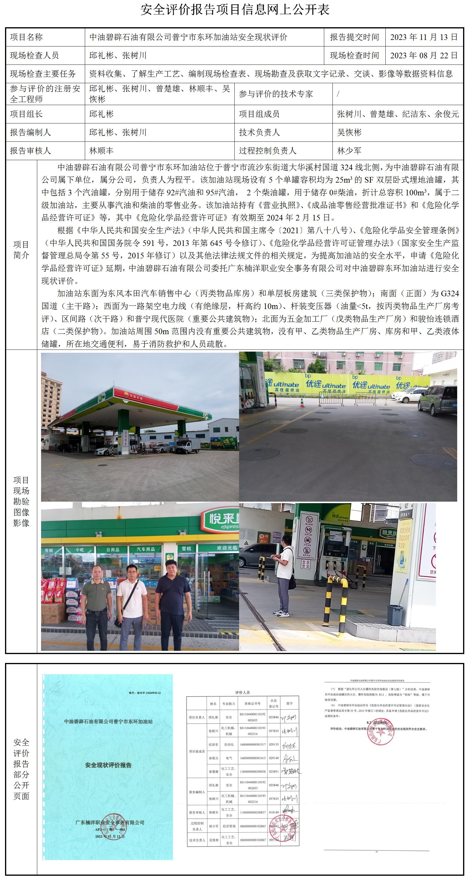 中油碧辟石油有限公司普宁市东环加油站安全现状评价