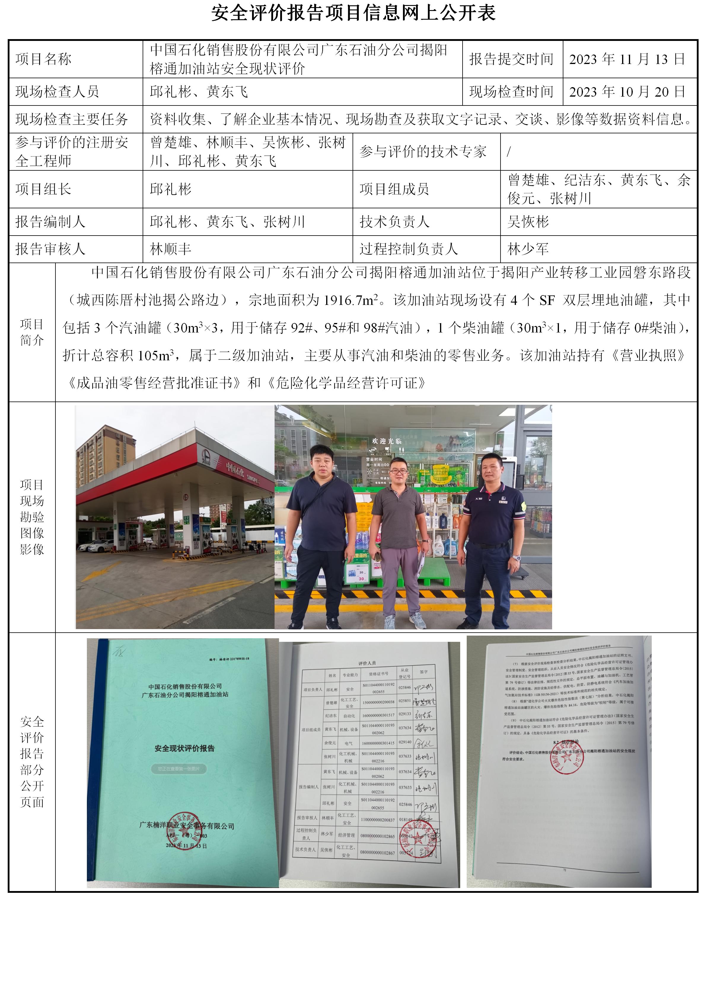 中国石化销售股份有限公司广东石油分公司揭阳榕通加油站安全现状评价