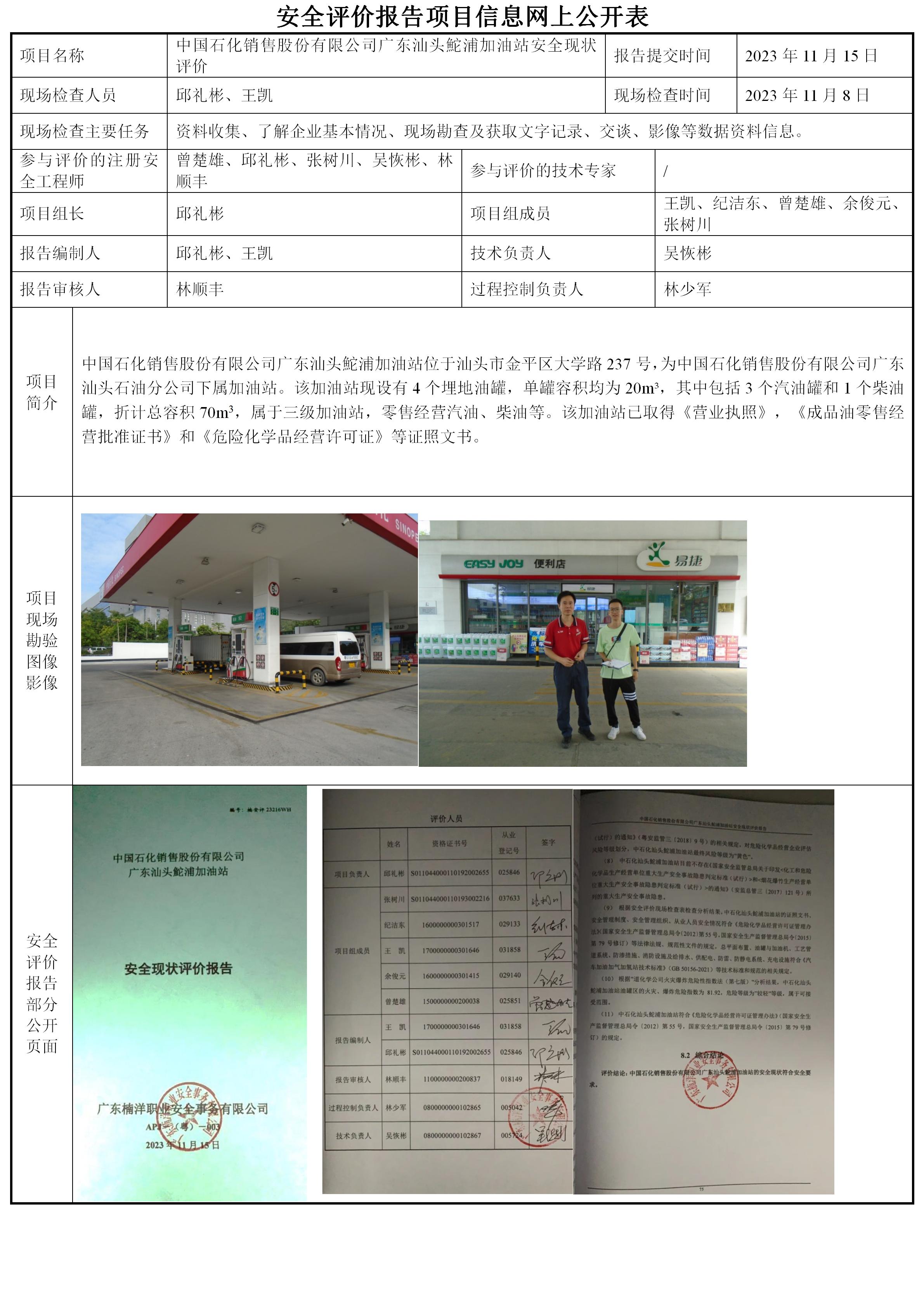 中国石化销售股份有限公司广东汕头鮀浦加油站安全现状评价