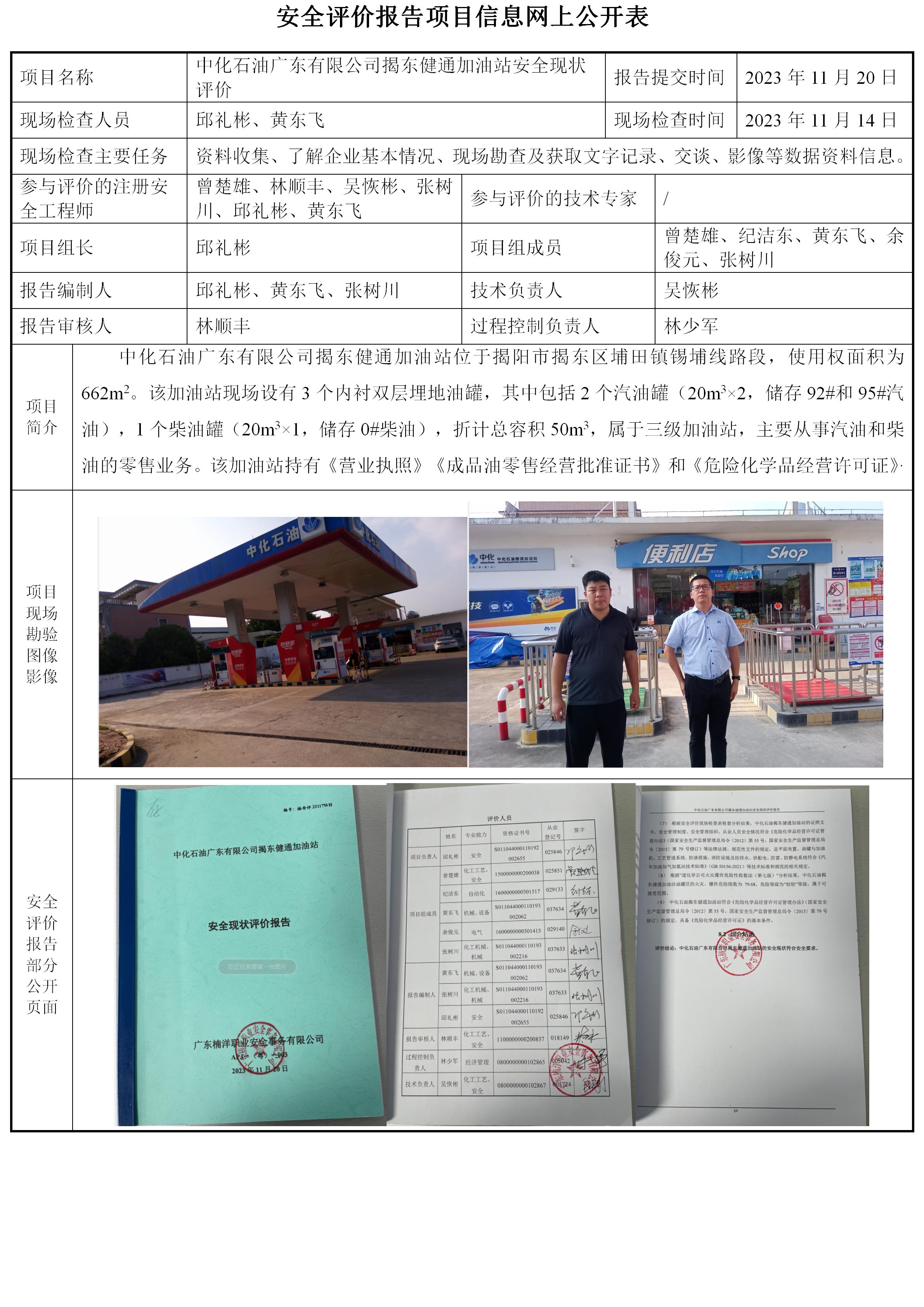 中化石油广东有限公司揭东健通加油站安全现状评价