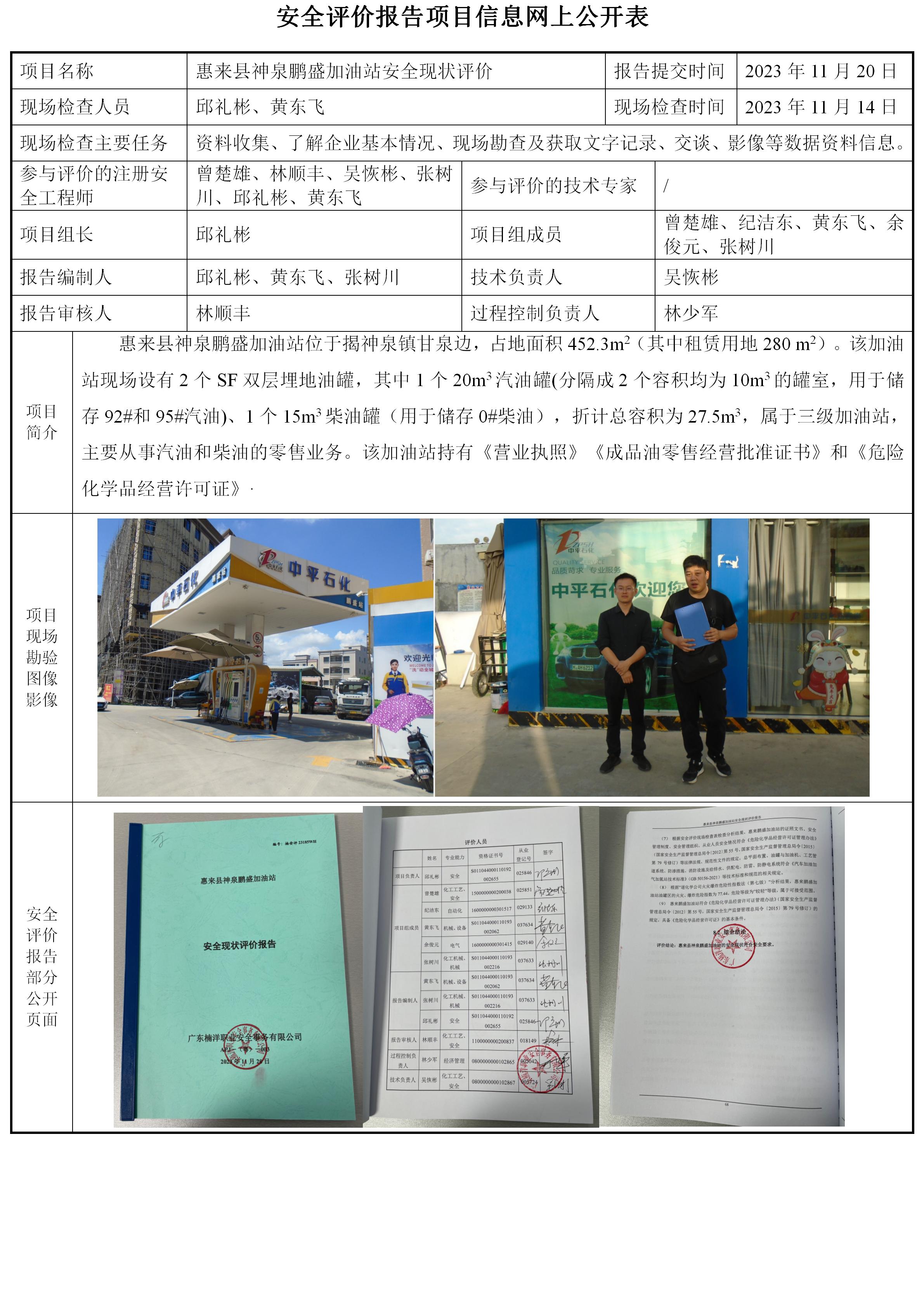 惠来县神泉鹏盛加油站安全现状评价