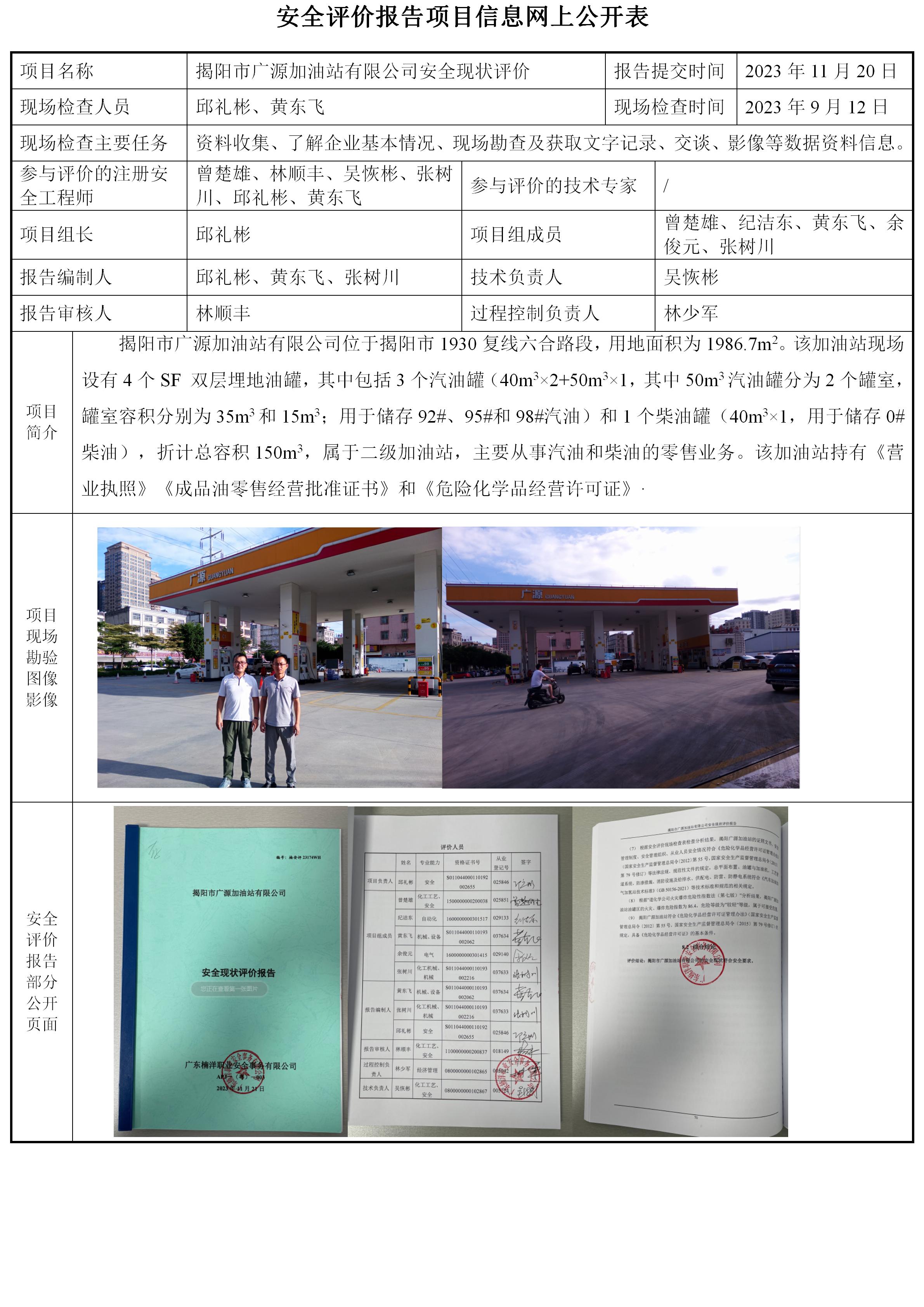 揭阳市广源加油站有限公司安全现状评价