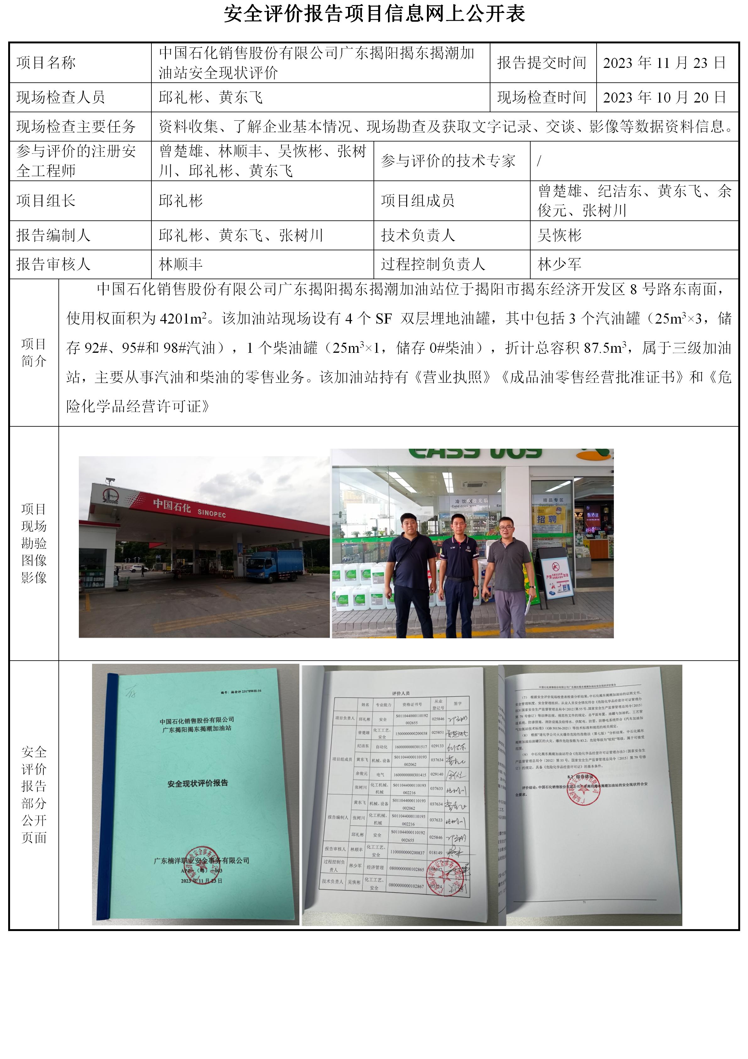 中国石化销售股份有限公司广东揭阳揭东揭潮加油站安全现状评价