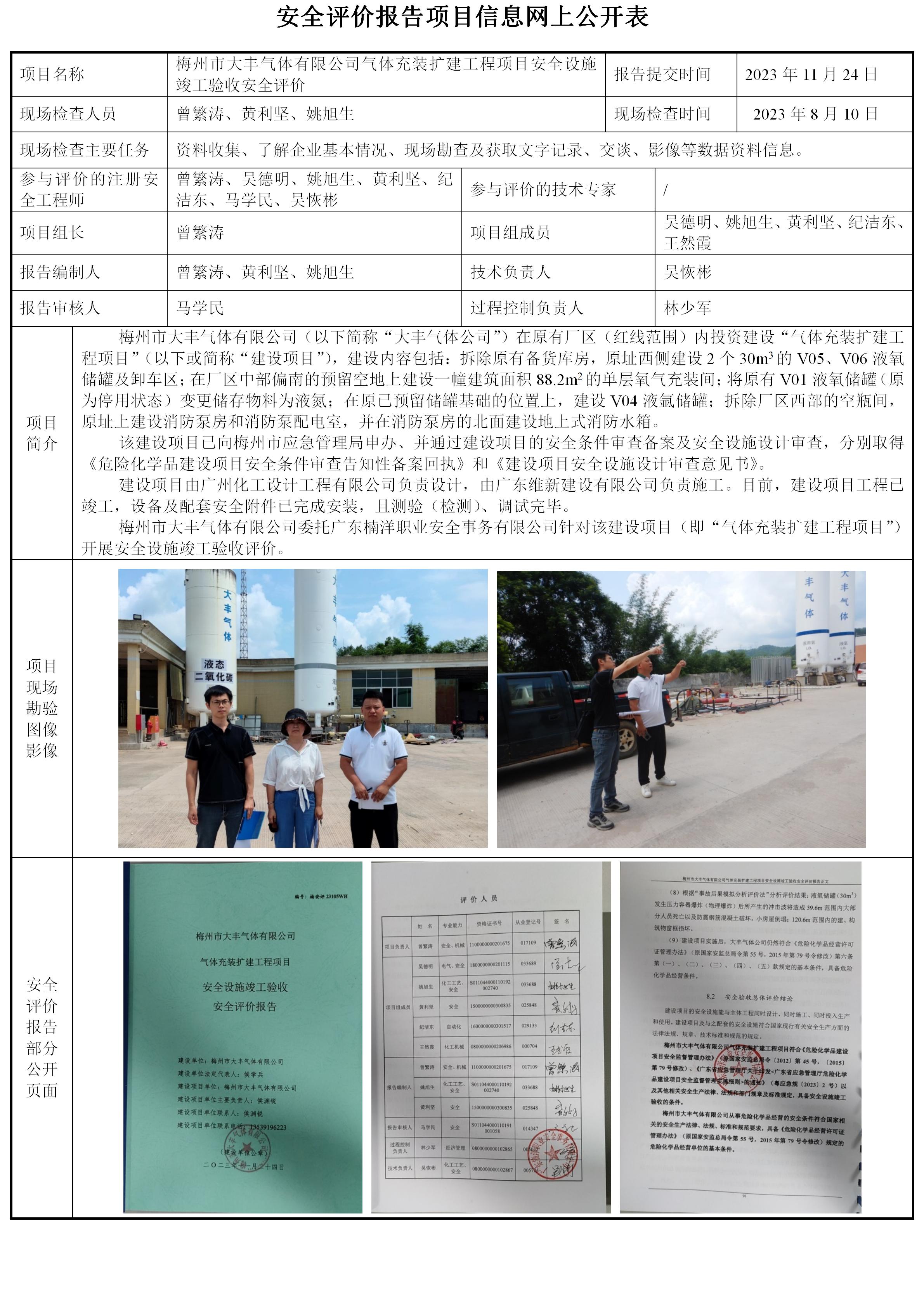 梅州市大丰气体有限公司气体充装扩建工程项目安全设施竣工验收安全评价