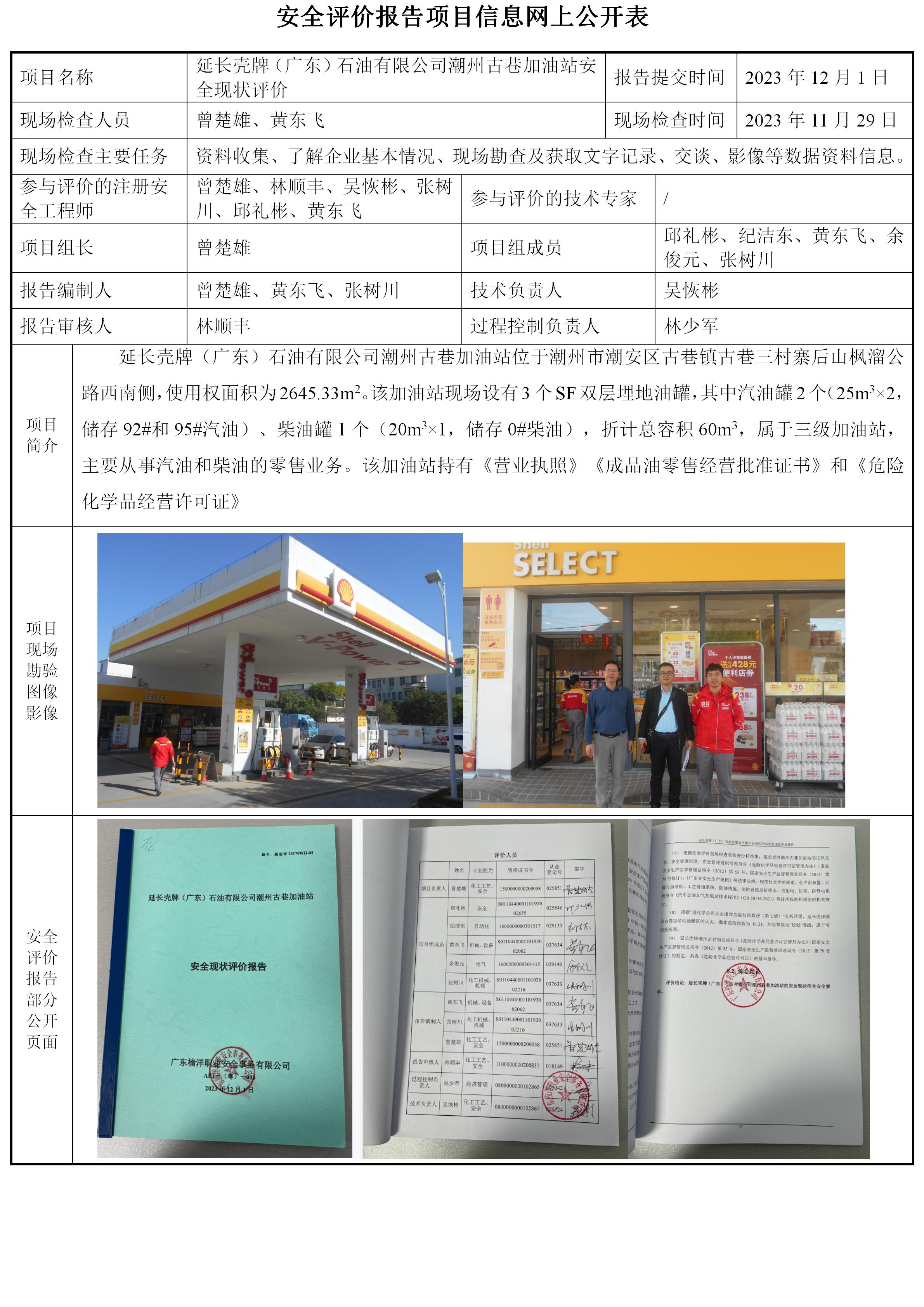 延长壳牌(广东)石油有限公司潮州古巷加油站安全现状评价