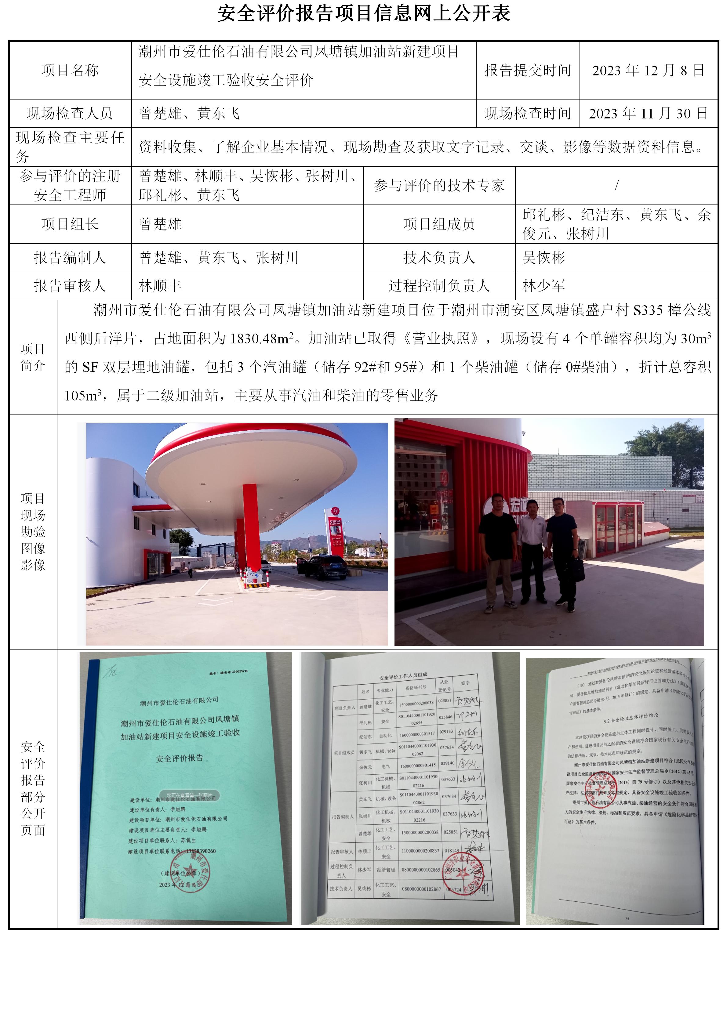 潮州市爱仕伦石油有限公司潮州市爱仕伦石油有限公司凤塘镇加油站新建项目安全设施竣工验收安全评价