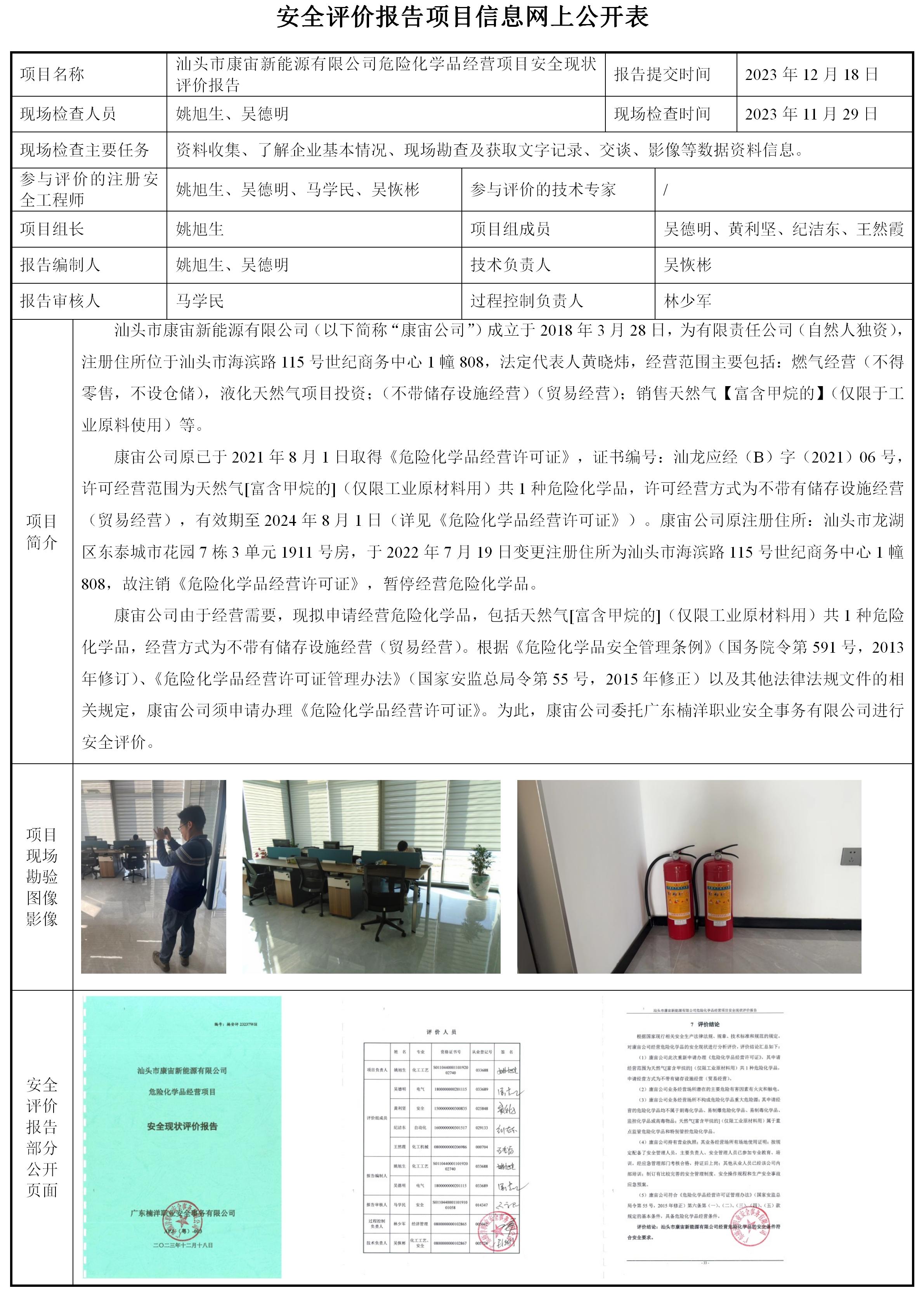 汕头市康宙新能源有限公司危险化学品经营项目安全现状评价