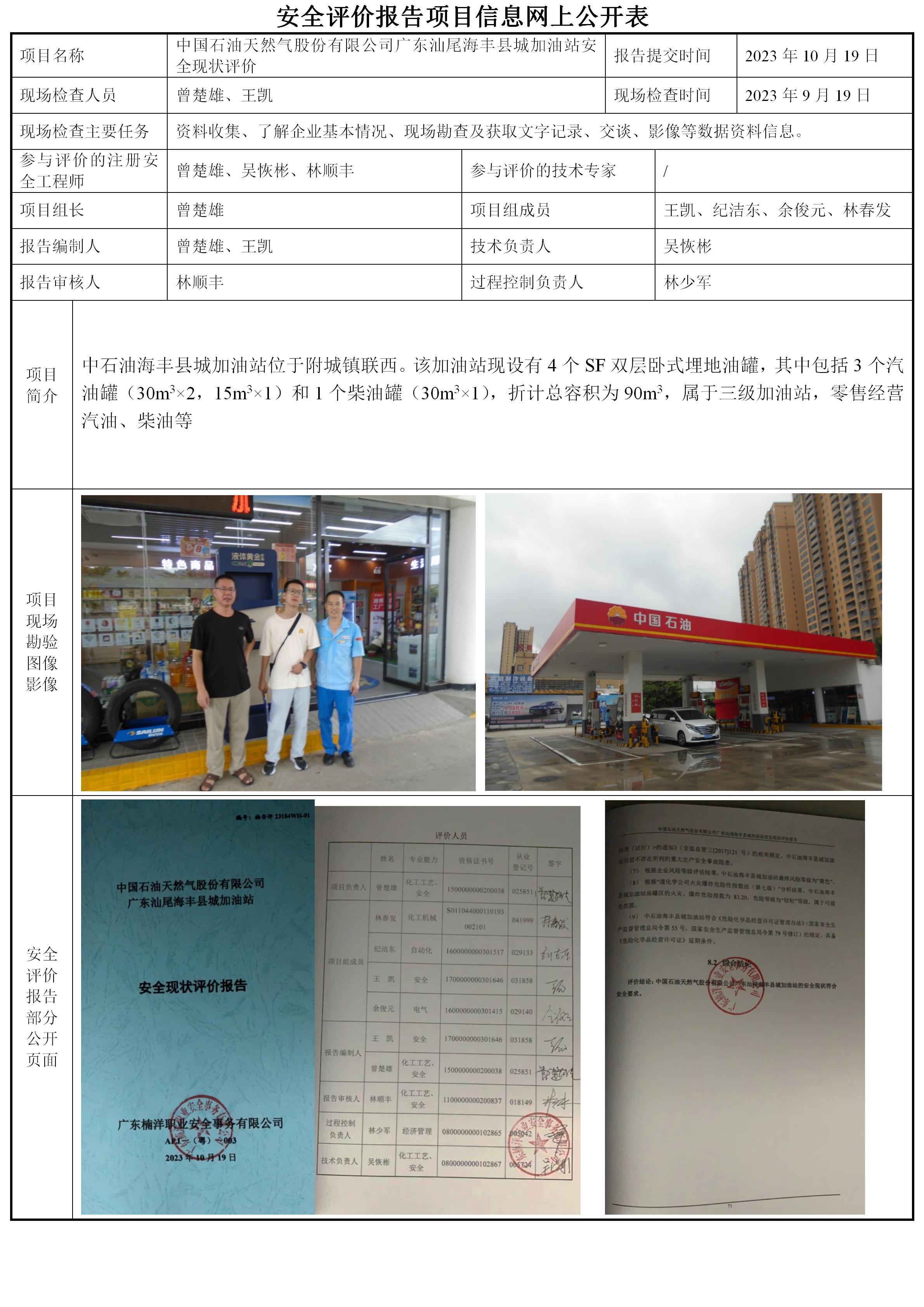 中国石油天然气股份有限公司广东汕尾海丰县城加油站安全现状评价