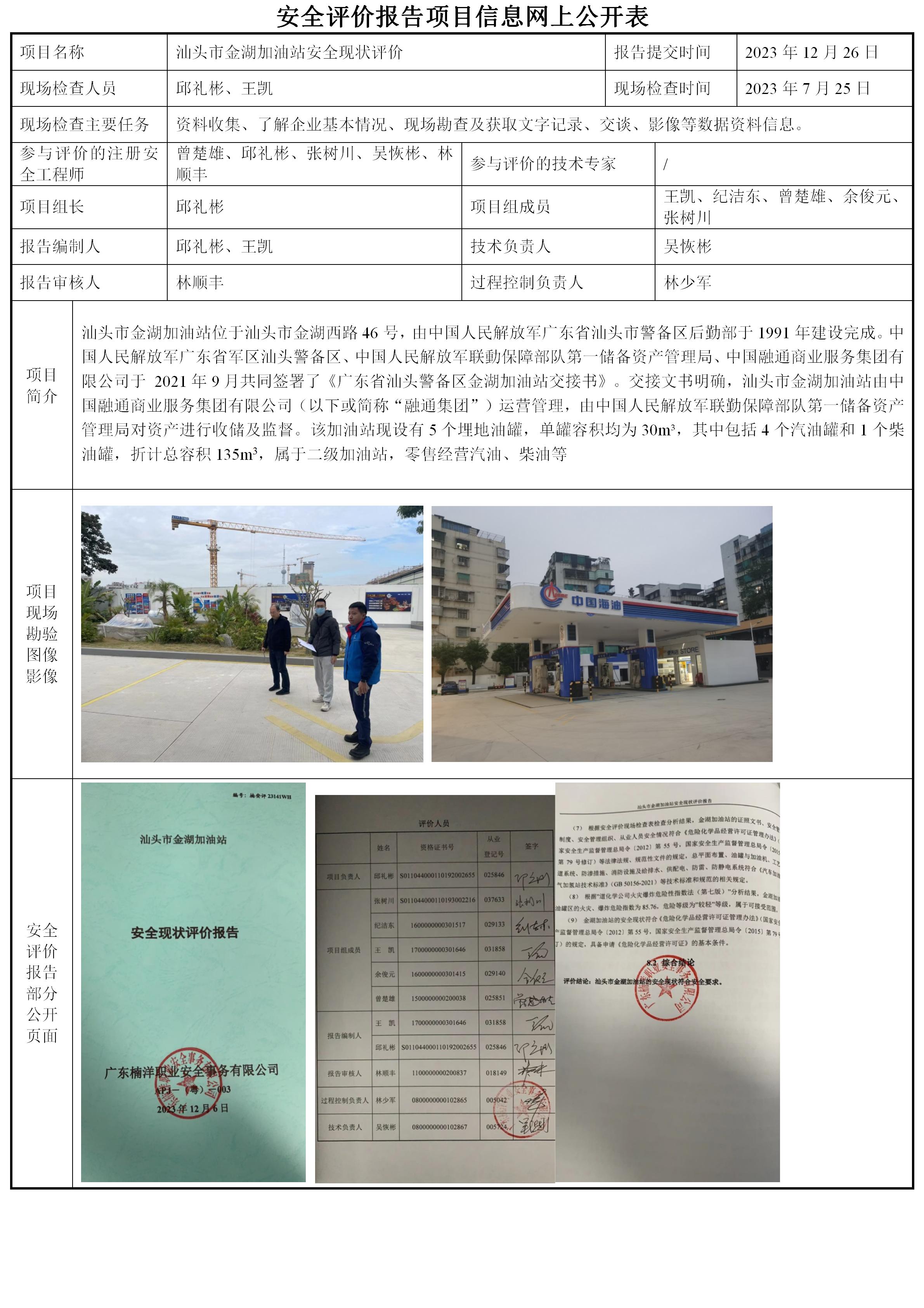 汕头市金湖加油站安全现状评价