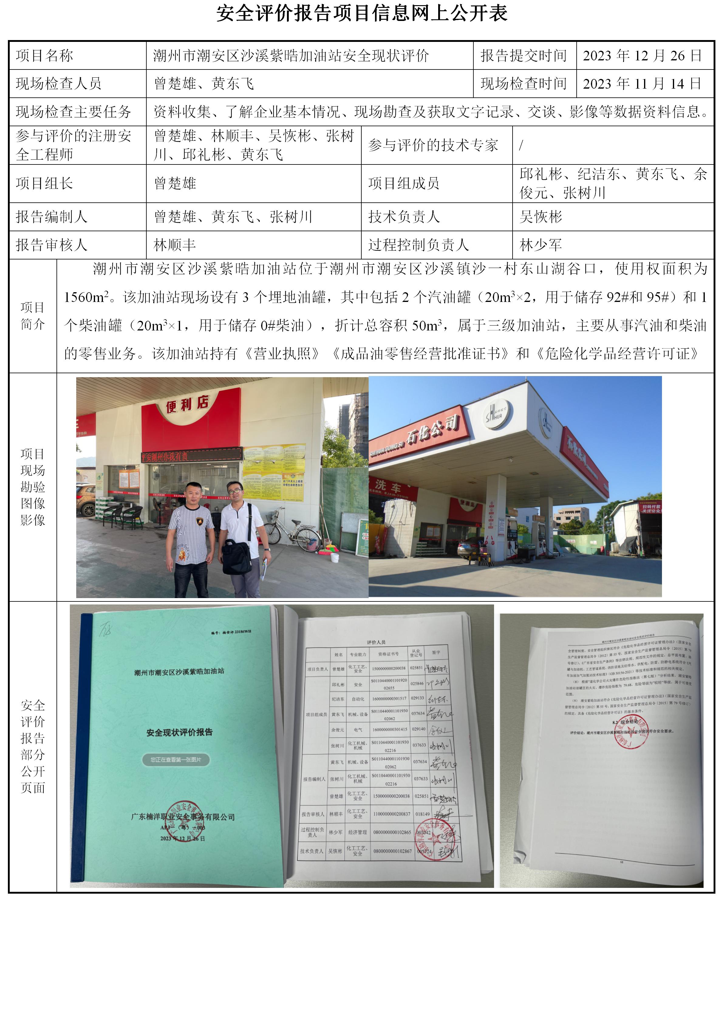 潮州市潮安区沙溪紫晧加油站安全现状评价