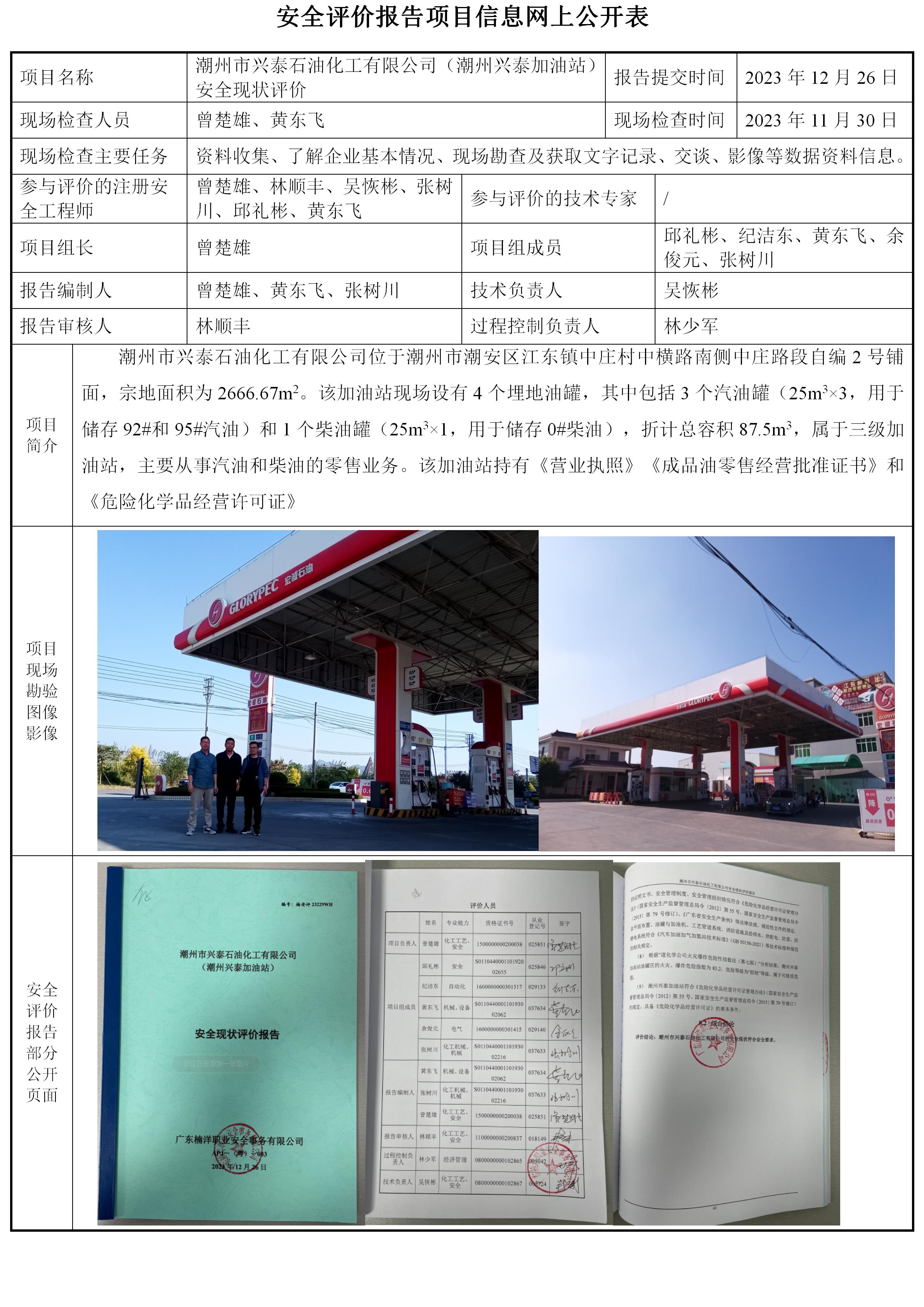 潮州市兴泰石油化工有限公司(潮州兴泰加油站)安全现状评价