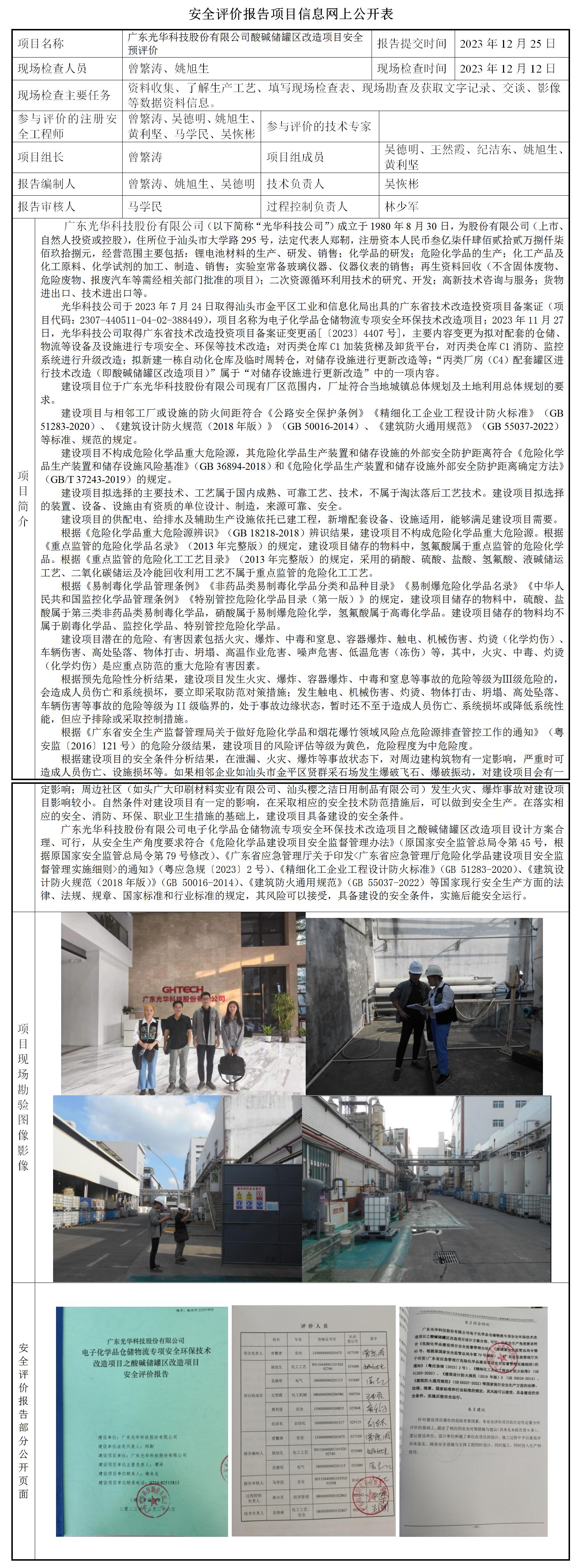 广东光华科技股份有限公司电子化学品仓储物流专项安全环保技术改造项目之酸碱储罐区改造项目安全评价