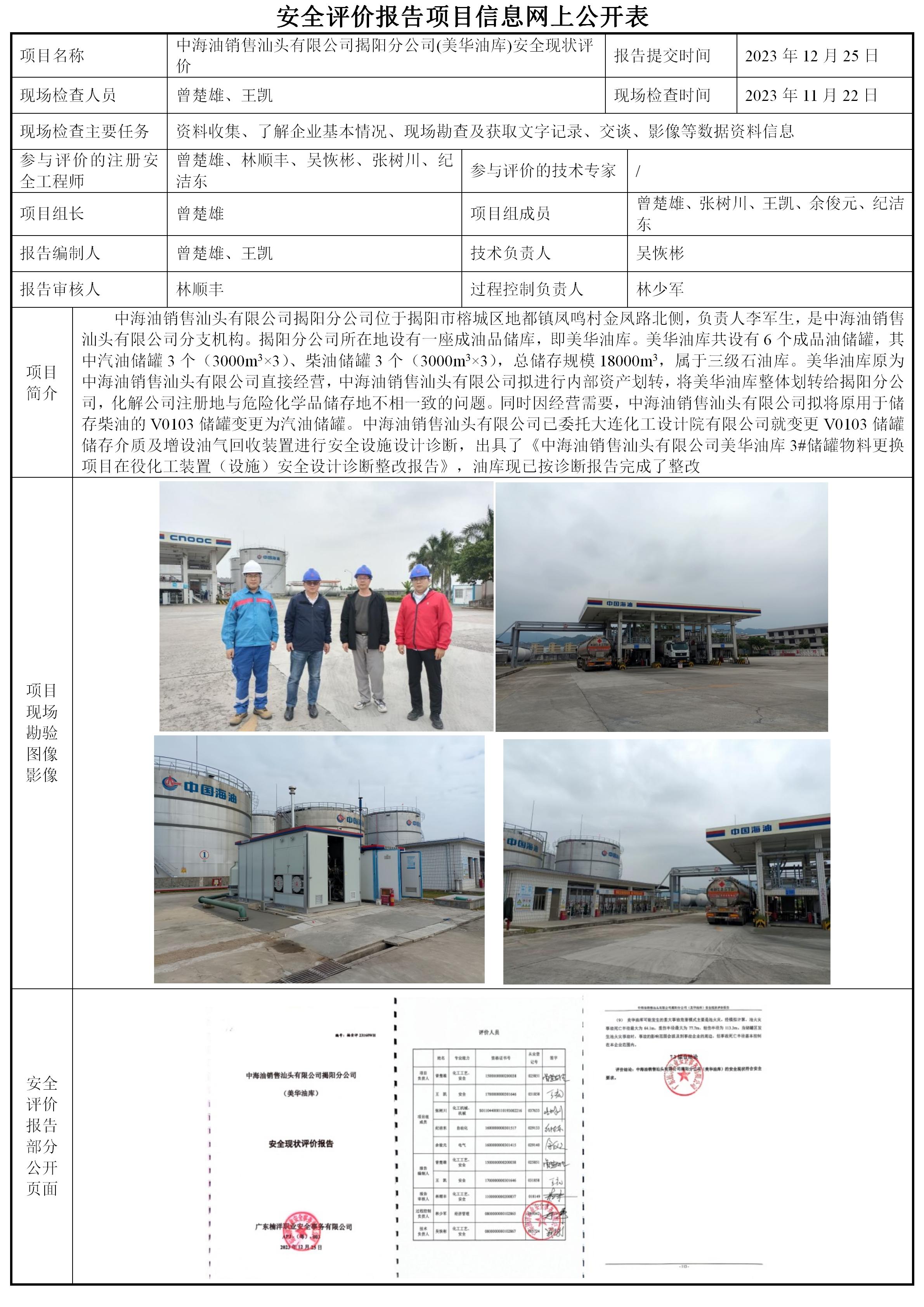 中海油销售汕头有限公司揭阳分公司(美华油库)安全现状评价