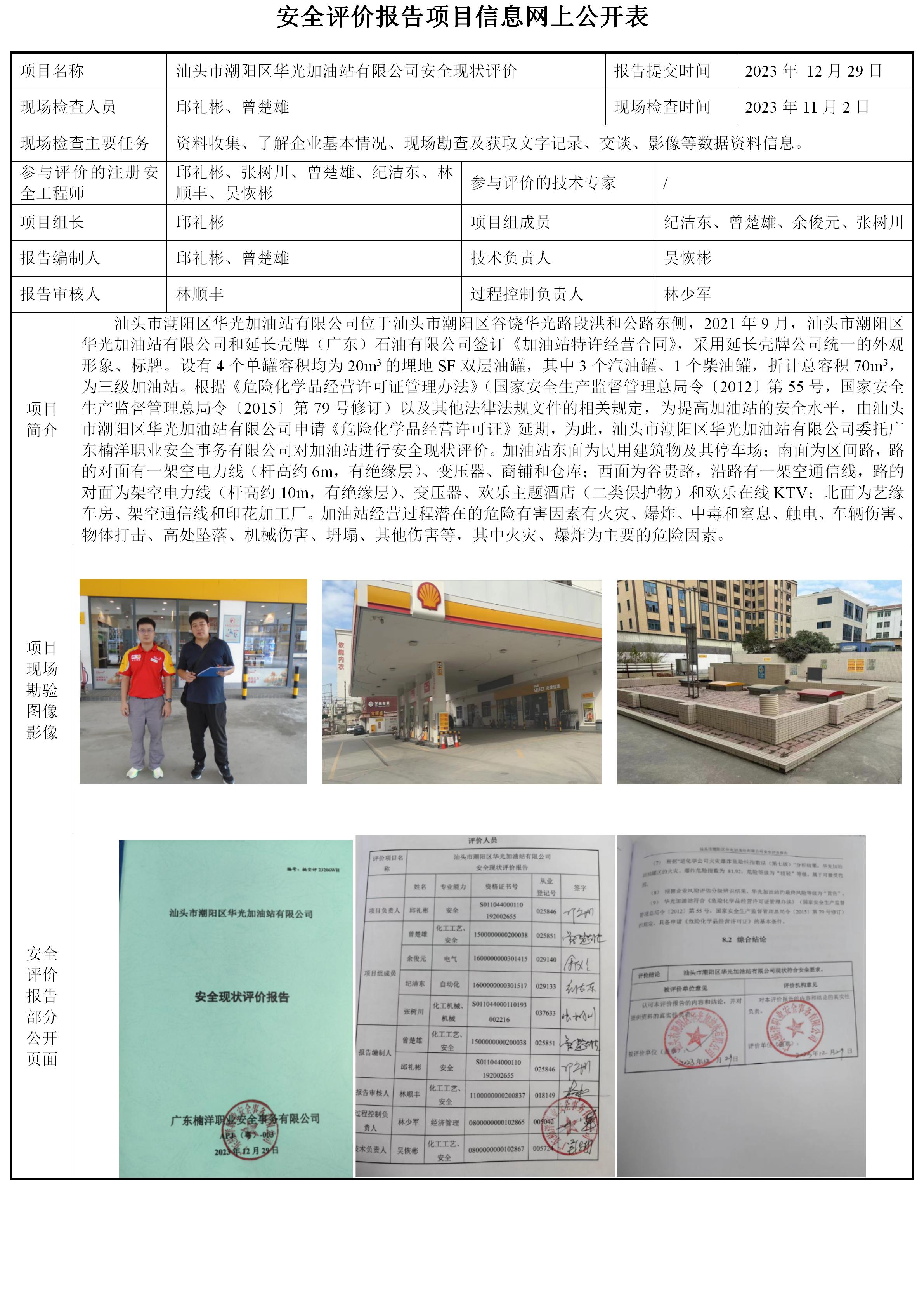 汕头市潮阳区华光加油站有限公司安全现状评价