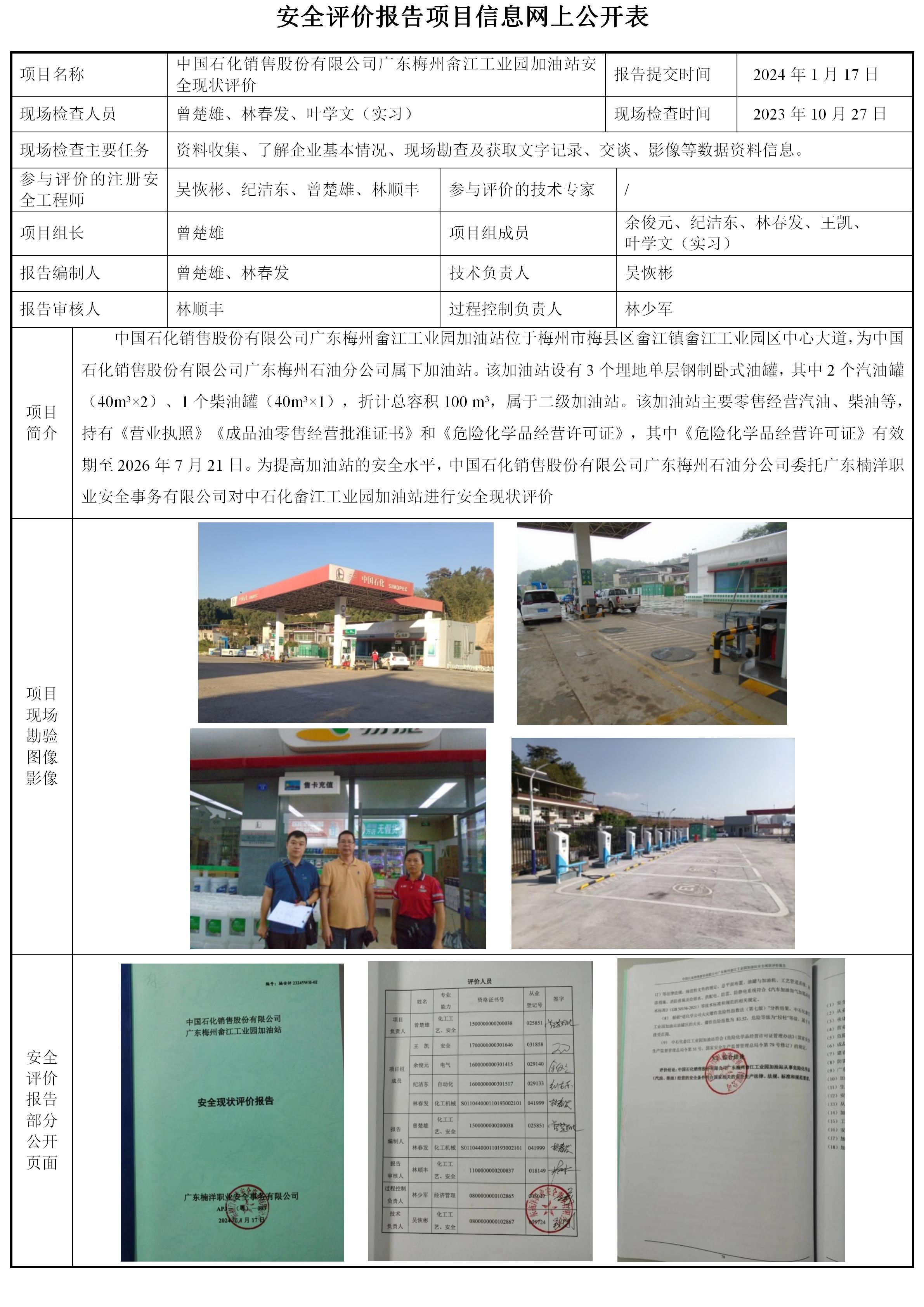 中国石化销售股份有限公司广东梅州兴宁向阳加油站安全现状评价
