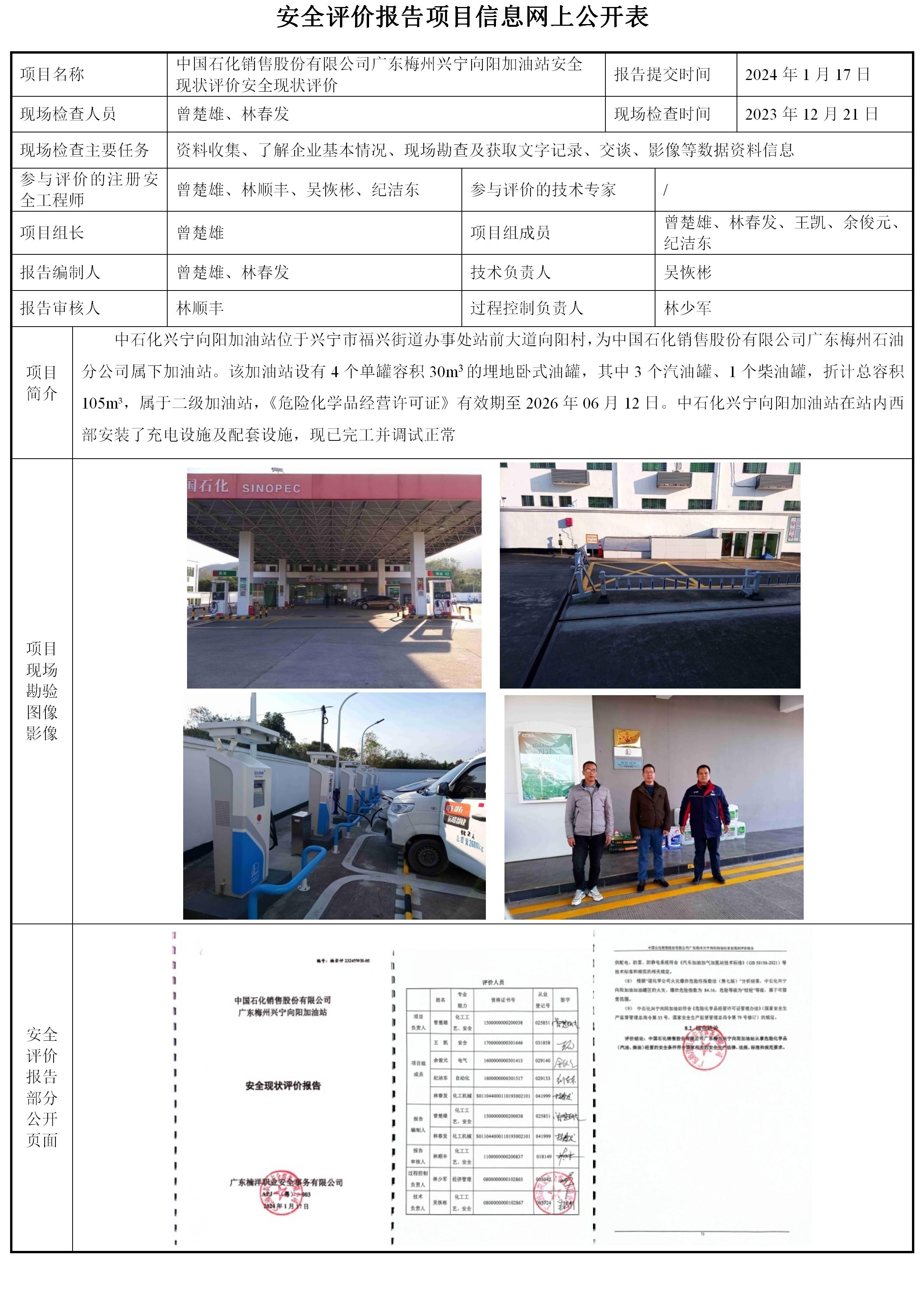 中国石化销售股份有限公司广东梅州兴宁向阳加油站安全现状评价