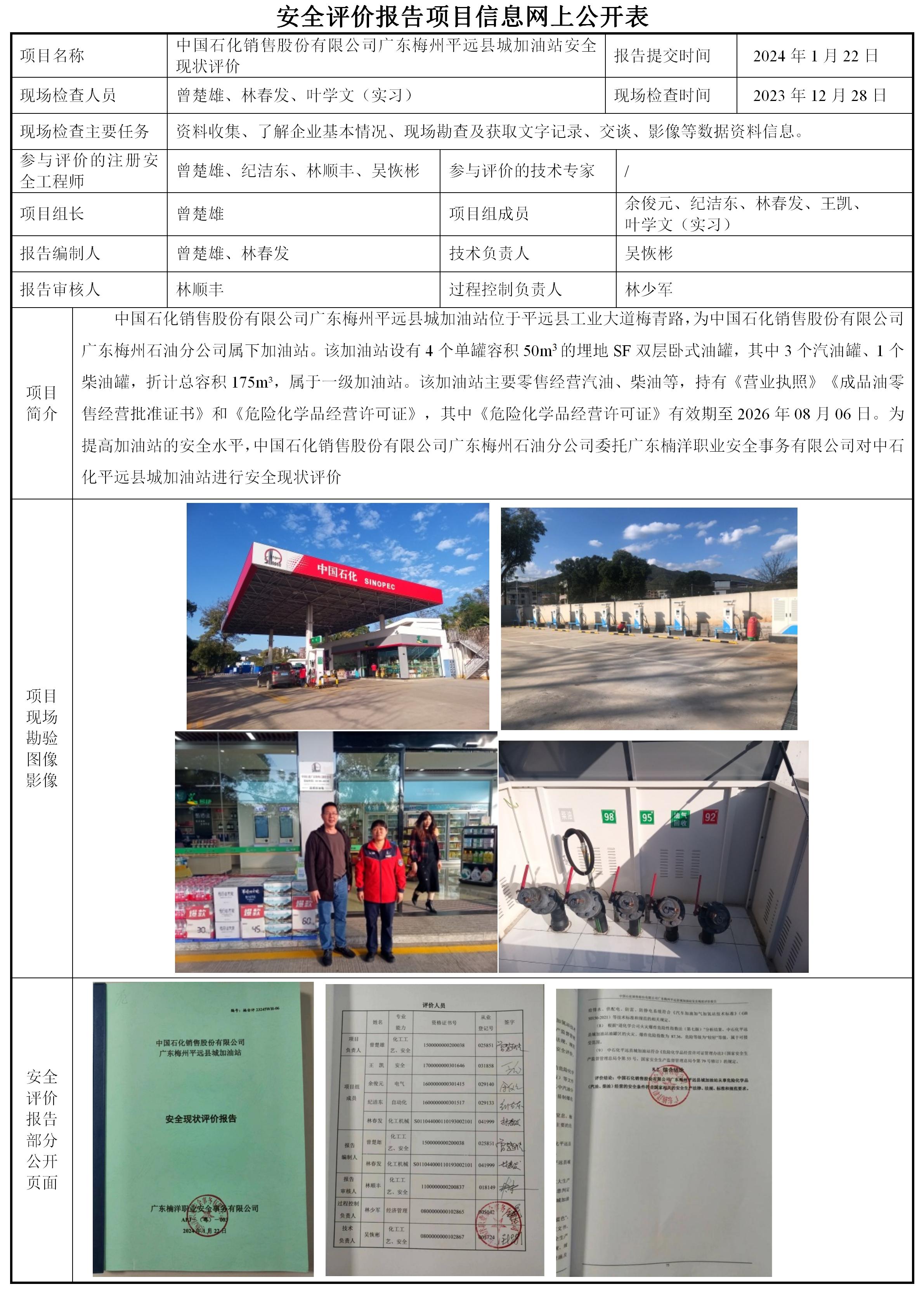 中国石化销售股份有限公司广东梅州平远县城加油站安全现状评价
