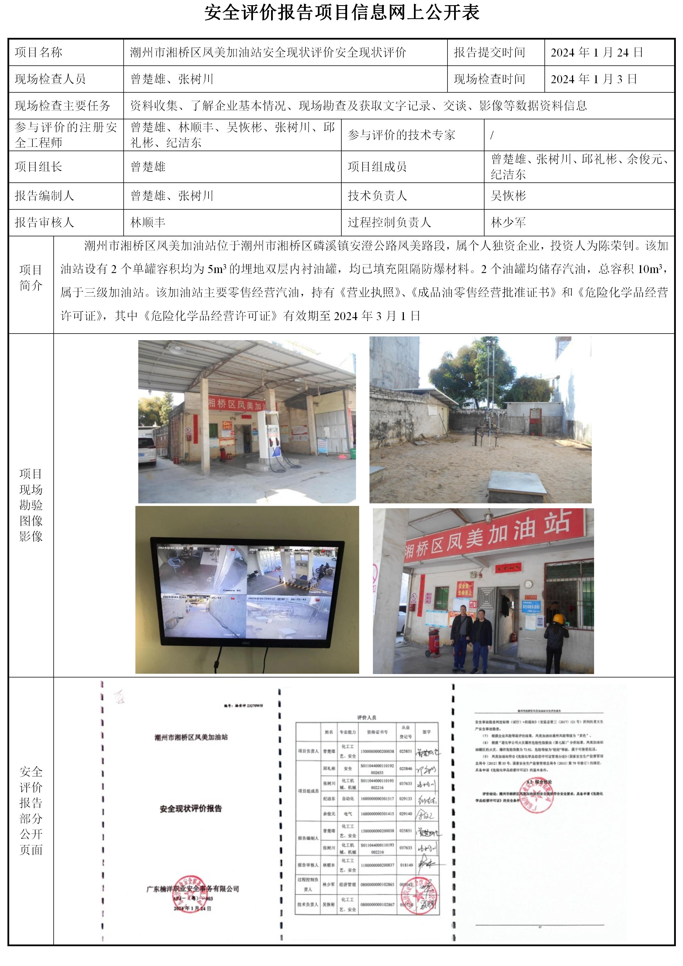潮州市湘桥区凤美加油站安全现状评价