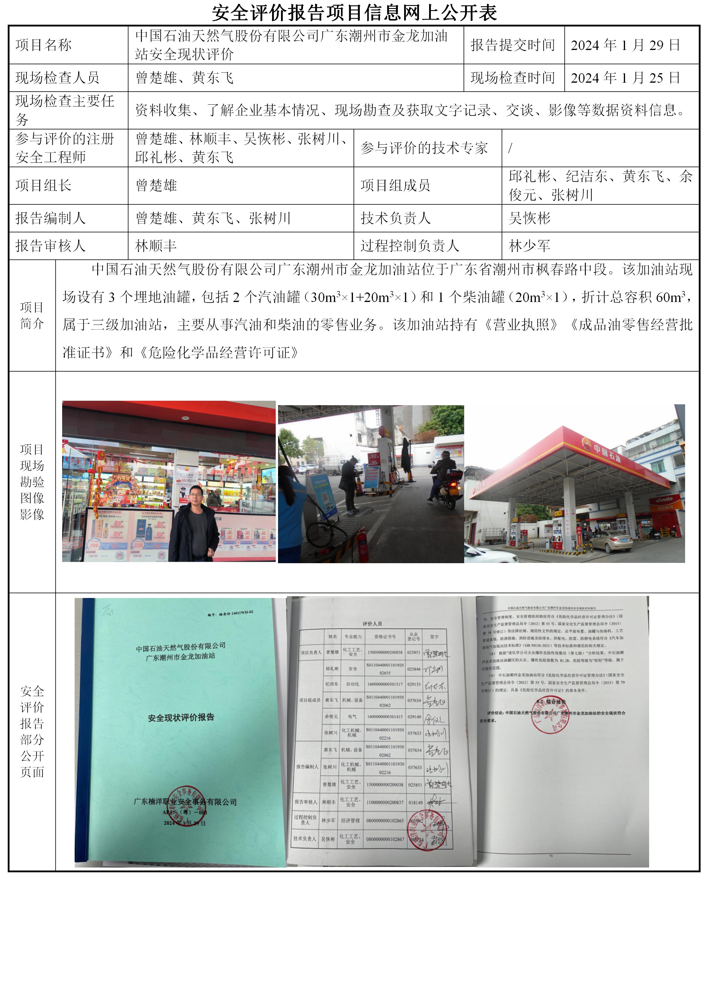 中国石油天然气股份有限公司广东潮州市金龙加油站安全现状评价