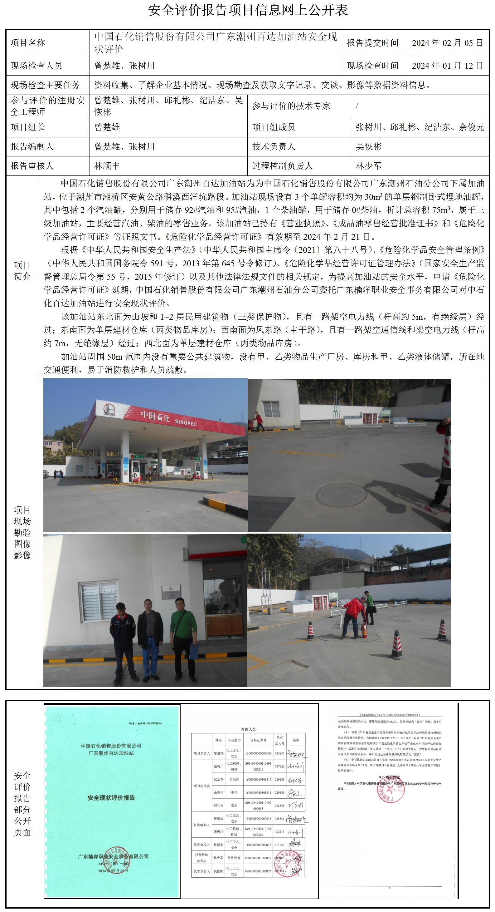 中国石化销售股份有限公司广东潮州百达加油站安全现状评价